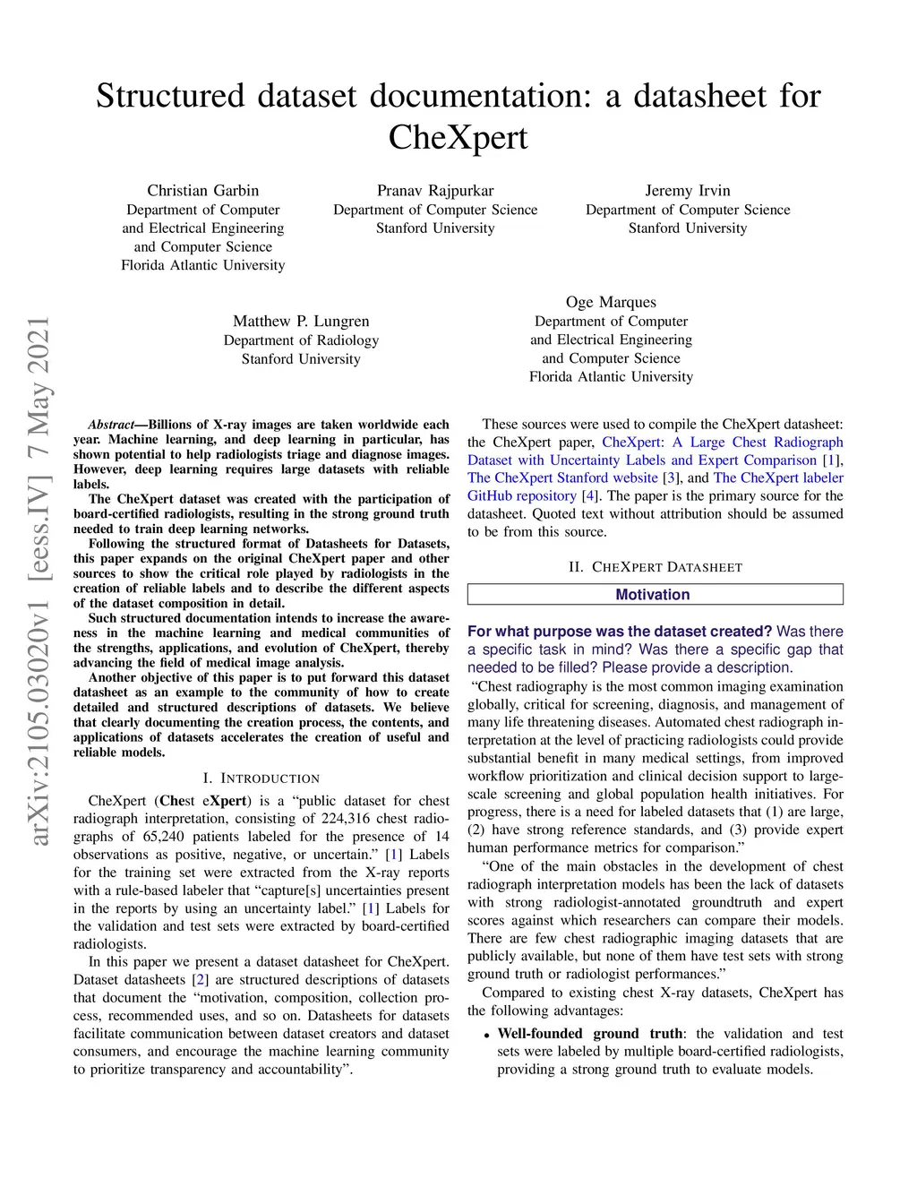 Structured dataset documentation: a datasheet for CheXpert