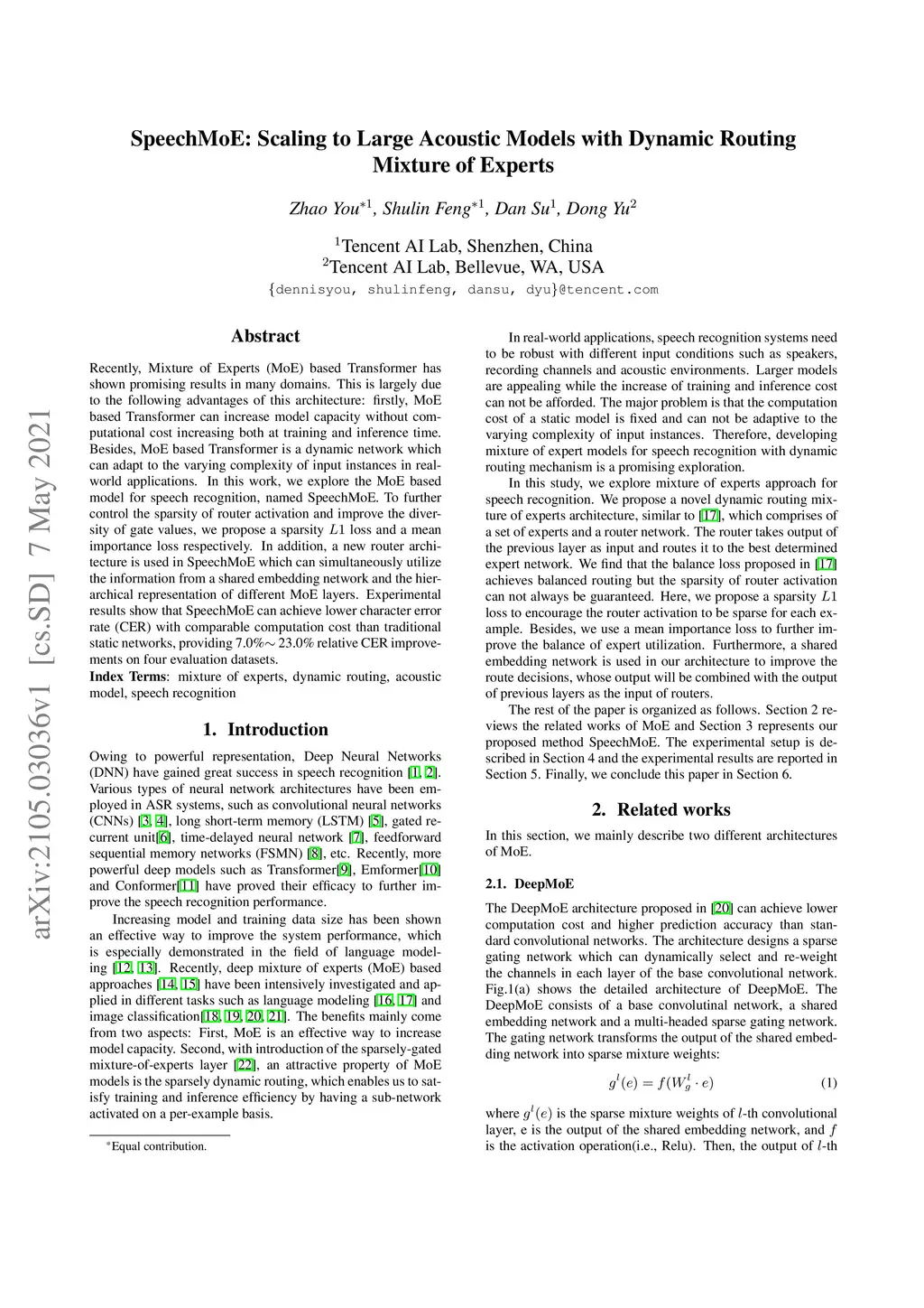 SpeechMoE: Scaling to Large Acoustic Models with Dynamic Routing Mixture