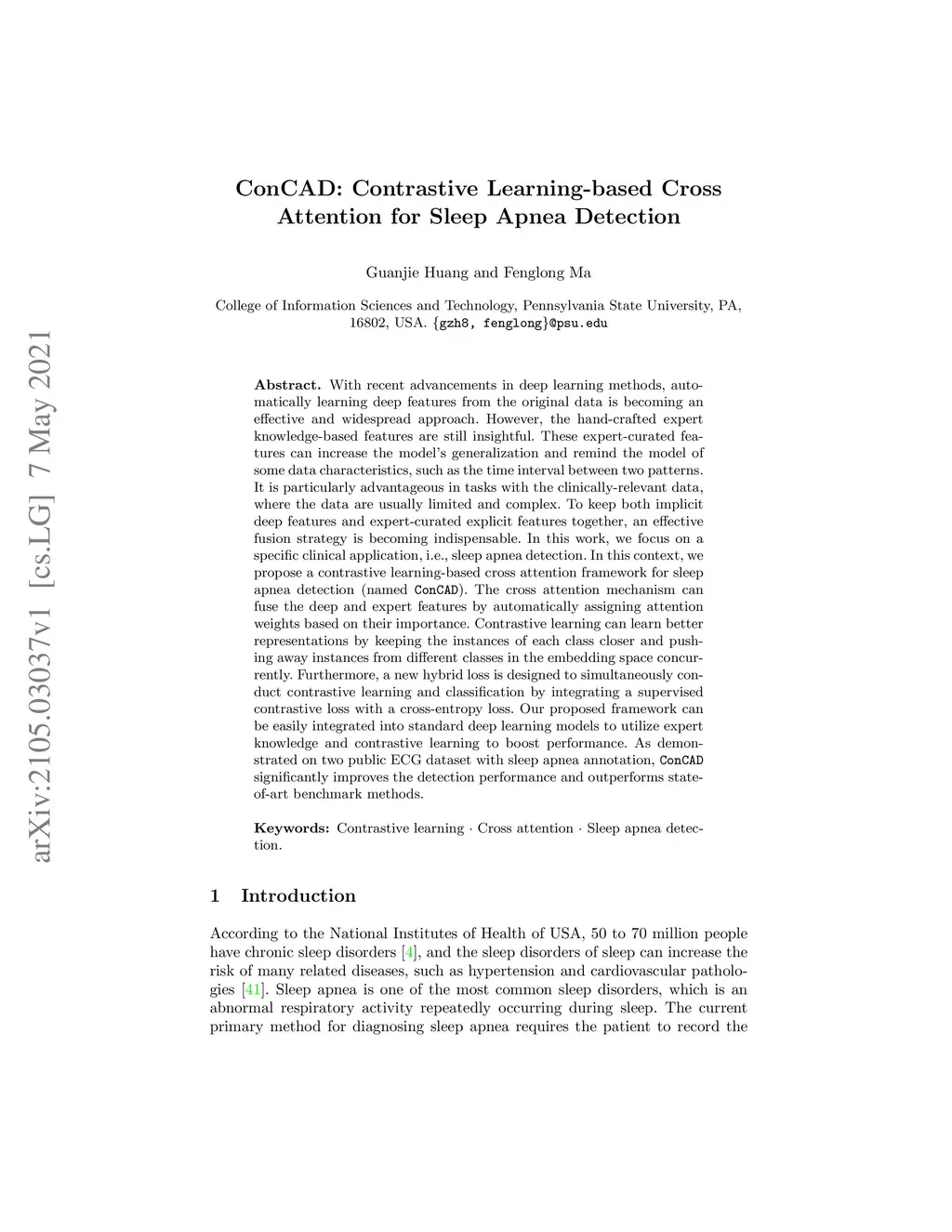 ConCAD: Contrastive Learning-based Cross Attention for Sleep Apnea