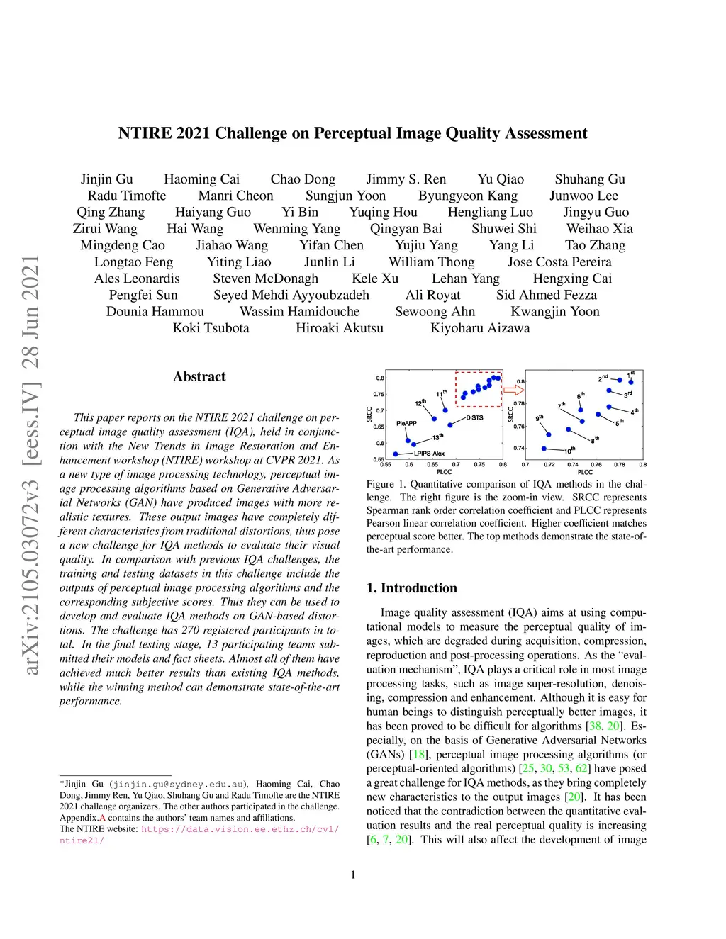 NTIRE 2021 Challenge on Perceptual Image Quality Assessment