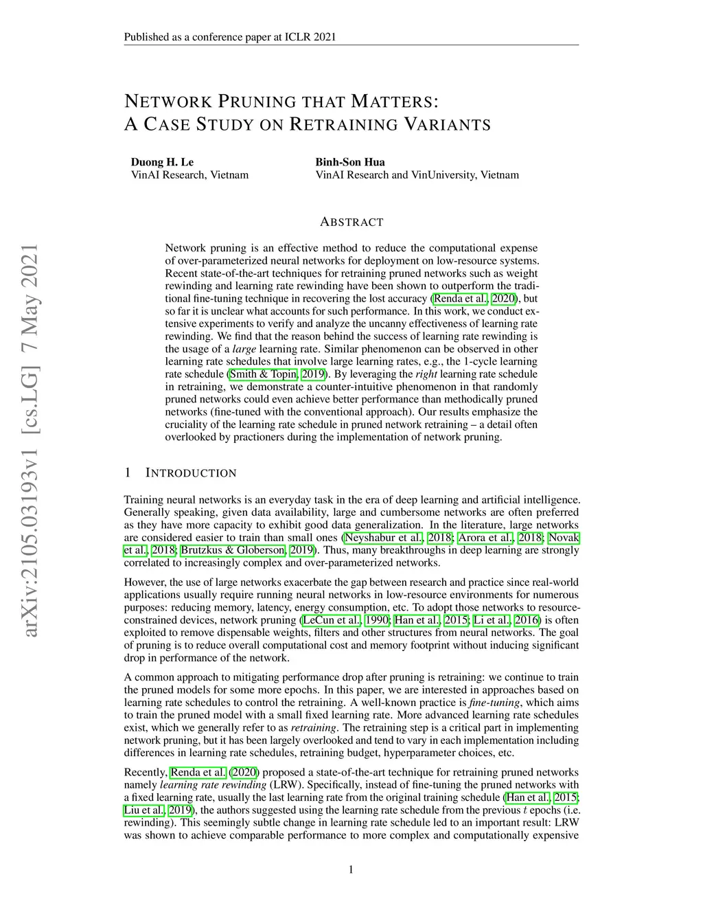Network Pruning That Matters: A Case Study on Retraining Variants
