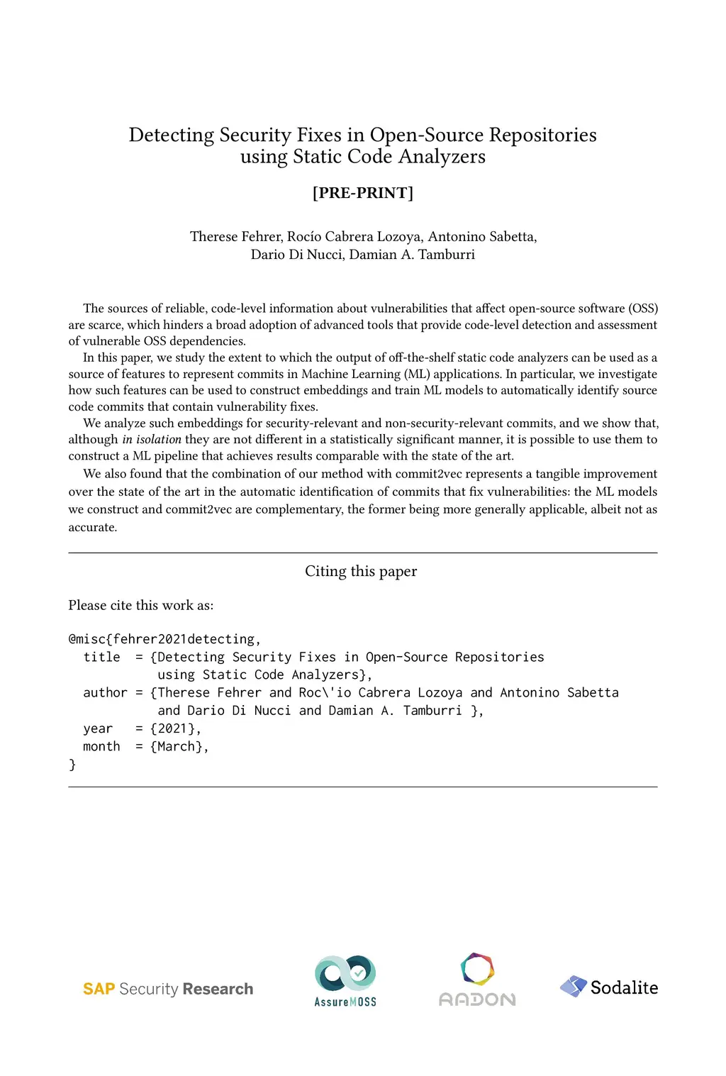 Detecting Security Fixes in Open-Source Repositories using Static Code