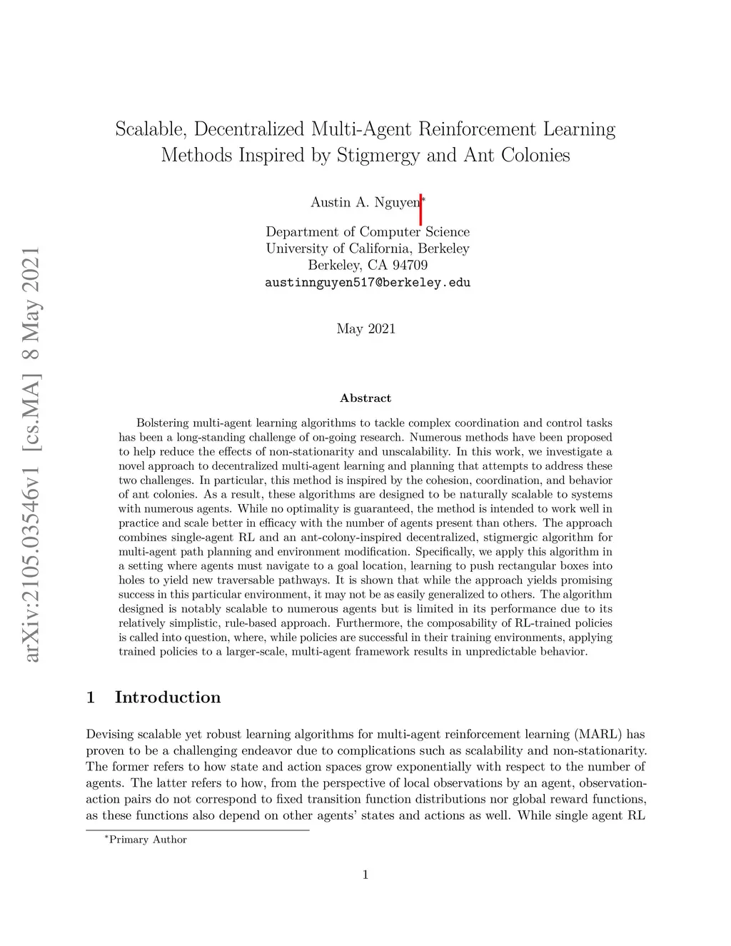 Bolstering multi-agent learning algorithms to tackle complex coordination and control tasks has been a long-standing challenge of on-going research. Numerous methods have been proposed to help reduce the effects of non-stationarity and unscalability. In this work, we investigate a novel approach to decentralized multi-agent learning and planning that attempts to address these two challenges. In particular, this method is inspired by the cohesion, coordination, and behavior of ant colonies. As a result, these algorithms are designed to be naturally scalable to systems with numerous agents. While no optimality is guaranteed, the method is intended to work well in practice and scale better in efficacy with the number of agents present than others. The approach combines single-agent RL and an ant-colony-inspired decentralized, stigmergic algorithm for multi-agent path planning and environment modification. Specifically, we apply this algorithm in a setting where agents must navigate to a goal location, learning to push rectangular boxes into holes to yield new traversable pathways. It is shown that while the approach yields promising success in this particular environment, it may not be as easily generalized to others. The algorithm designed is notably scalable to numerous agents but is limited in its performance due to its relatively simplistic, rule-based approach. Furthermore, the composability of RL-trained policies is called into question, where, while policies are successful in their training environments, applying trained policies to a larger-scale, multi-agent framework results in unpredictable behavior.