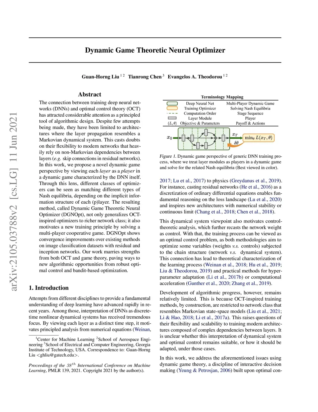 Dynamic Game Theoretic Neural Optimizer