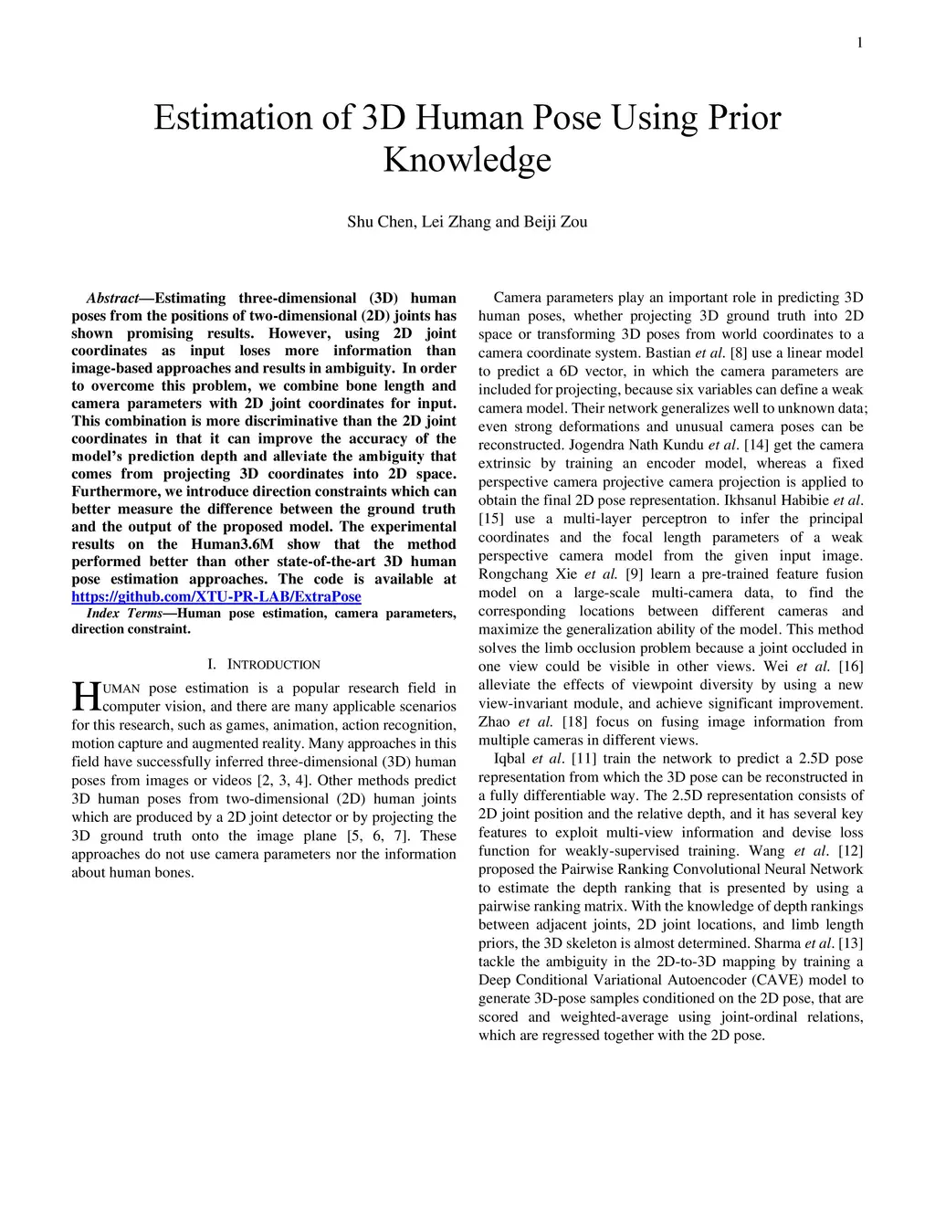 Estimation of 3D Human Pose Using Prior Knowledge