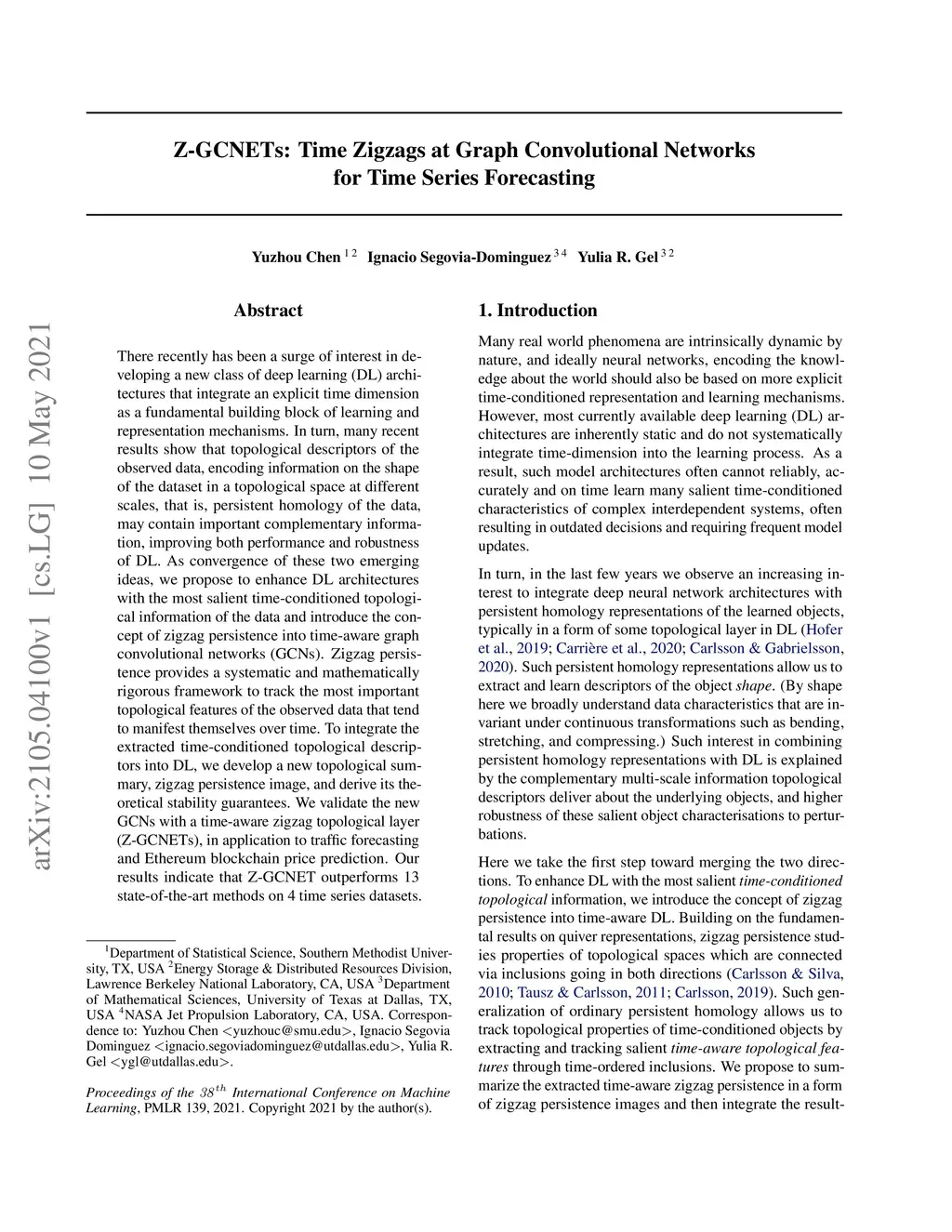 Z-GCNETs: Time Zigzags at Graph Convolutional Networks for Time Series