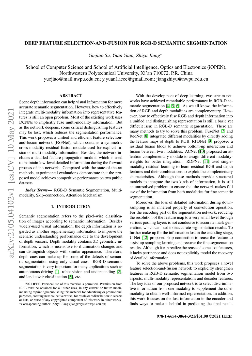 Deep feature selection-and-fusion for RGB-D semantic segmentation