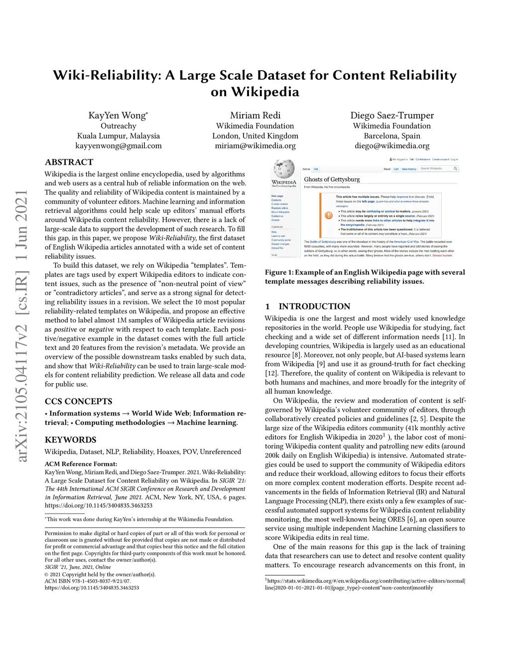 Wiki-Reliability: A Large Scale Dataset for Content Reliability on