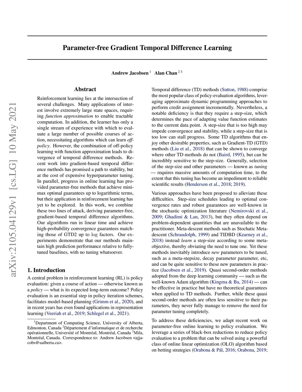 Reinforcement learning lies at the intersection of several challenges. Many applications of interest involve extremely large state spaces, requiring function approximation to enable tractable computation. In addition, the learner has only a single stream of experience with which to evaluate a large number of possible courses of action, necessitating algorithms which can learn off-policy. However, the combination of off-policy learning with function approximation leads to divergence of temporal difference methods. Recent work into gradient-based temporal difference methods has promised a path to stability, but at the cost of expensive hyperparameter tuning. In parallel, progress in online learning has provided parameter-free methods that achieve minimax optimal guarantees up to logarithmic terms, but their application in reinforcement learning has yet to be explored. In this work, we combine these two lines of attack, deriving parameter-free, gradient-based temporal difference algorithms. Our algorithms run in linear time and achieve high-probability convergence guarantees matching those of GTD2 up to factors. Our experiments demonstrate that our methods maintain high prediction performance relative to fully-tuned baselines, with no tuning whatsoever.