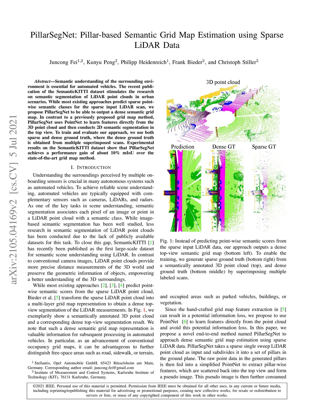 PillarSegNet: Pillar-based Semantic Grid Map Estimation using Sparse
