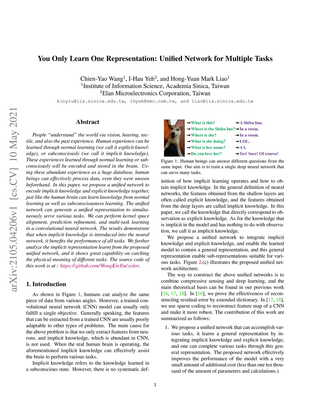 You Only Learn One Representation: Unified Network for Multiple Tasks