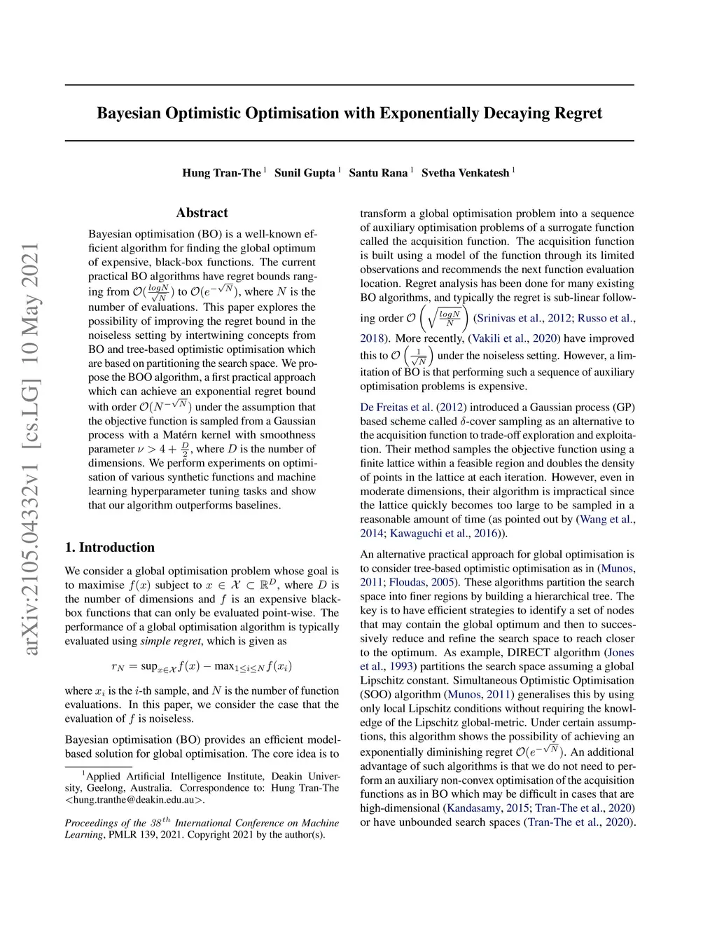 Bayesian Optimistic Optimisation with Exponentially Decaying Regret