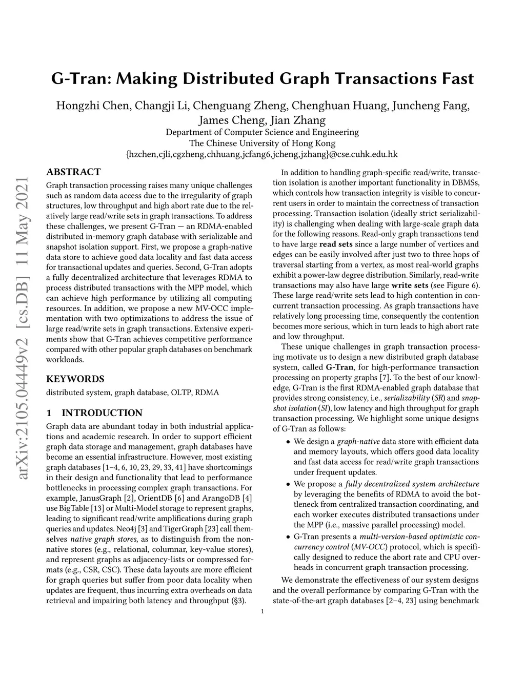 Graph transaction processing raises many unique challenges such as random data access due to the irregularity of graph structures, low throughput and high abort rate due to the relatively large read/write sets in graph transactions. To address these challenges, we present G-Tran -- an RDMA-enabled distributed in-memory graph database with serializable and snapshot isolation support. First, we propose a graph-native data store to achieve good data locality and fast data access for transactional updates and queries. Second, G-Tran adopts a fully decentralized architecture that leverages RDMA to process distributed transactions with the MPP model, which can achieve high performance by utilizing all computing resources. In addition, we propose a new MV-OCC implementation with two optimizations to address the issue of large read/write sets in graph transactions. Extensive experiments show that G-Tran achieves competitive performance compared with other popular graph databases on benchmark workloads.