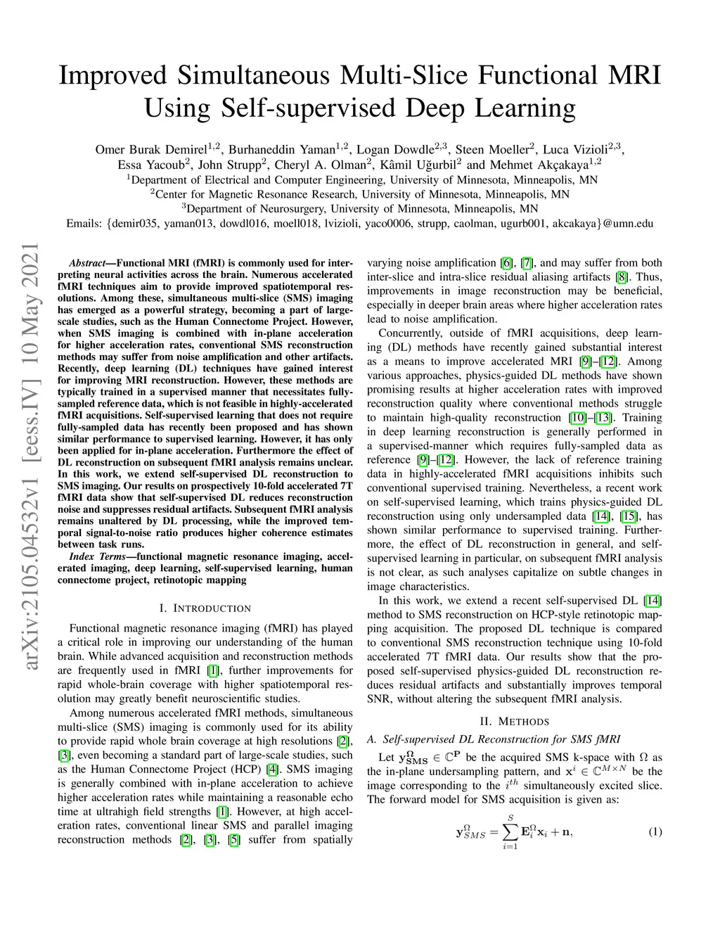 Improved Simultaneous Multi-Slice Functional MRI Using Self-supervised