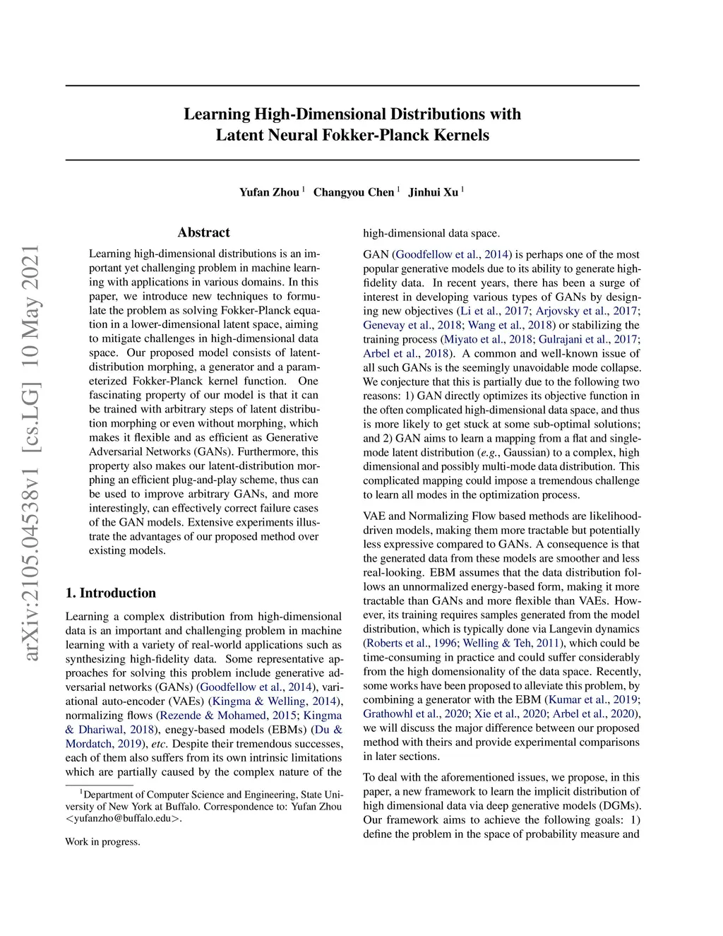 Learning high-dimensional distributions is an important yet challenging problem in machine learning with applications in various domains. In this paper, we introduce new techniques to formulate the problem as solving Fokker-Planck equation in a lower-dimensional latent space, aiming to mitigate challenges in high-dimensional data space. Our proposed model consists of latent-distribution morphing, a generator and a parameterized Fokker-Planck kernel function. One fascinating property of our model is that it can be trained with arbitrary steps of latent distribution morphing or even without morphing, which makes it flexible and as efficient as Generative Adversarial Networks (GANs). Furthermore, this property also makes our latent-distribution morphing an efficient plug-and-play scheme, thus can be used to improve arbitrary GANs, and more interestingly, can effectively correct failure cases of the GAN models. Extensive experiments illustrate the advantages of our proposed method over existing models.
