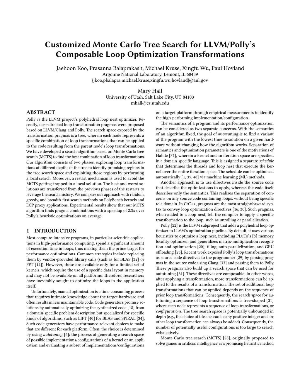 Customized Monte Carlo Tree Search for LLVM/Polly's Composable Loop