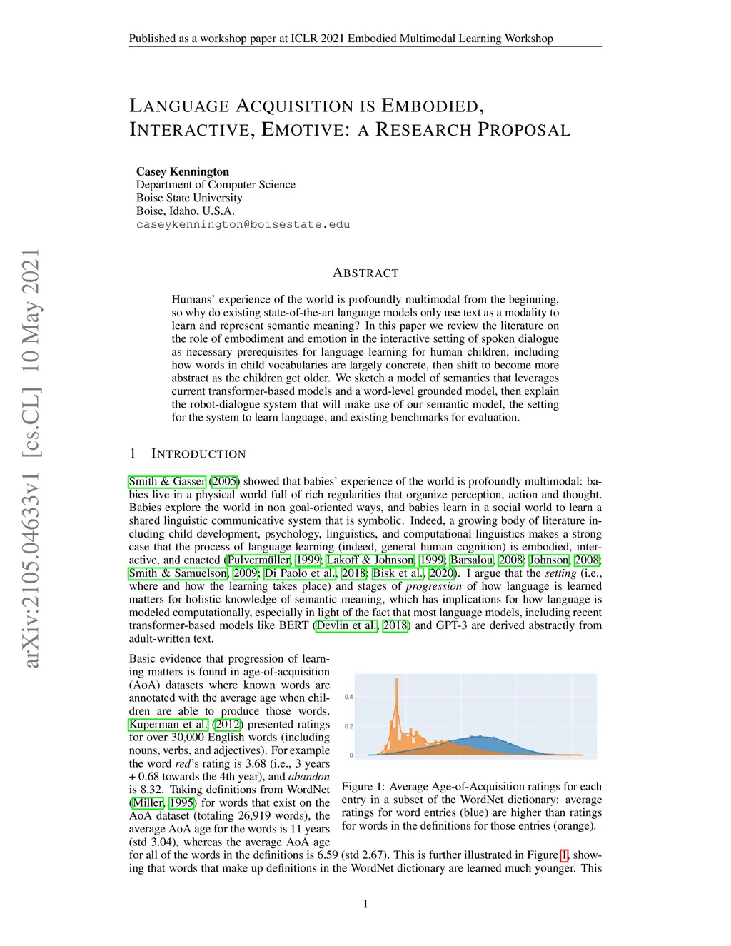 Humans' experience of the world is profoundly multimodal from the beginning, so why do existing state-of-the-art language models only use text as a modality to learn and represent semantic meaning? In this paper we review the literature on the role of embodiment and emotion in the interactive setting of spoken dialogue as necessary prerequisites for language learning for human children, including how words in child vocabularies are largely concrete, then shift to become more abstract as the children get older. We sketch a model of semantics that leverages current transformer-based models and a word-level grounded model, then explain the robot-dialogue system that will make use of our semantic model, the setting for the system to learn language, and existing benchmarks for evaluation.
