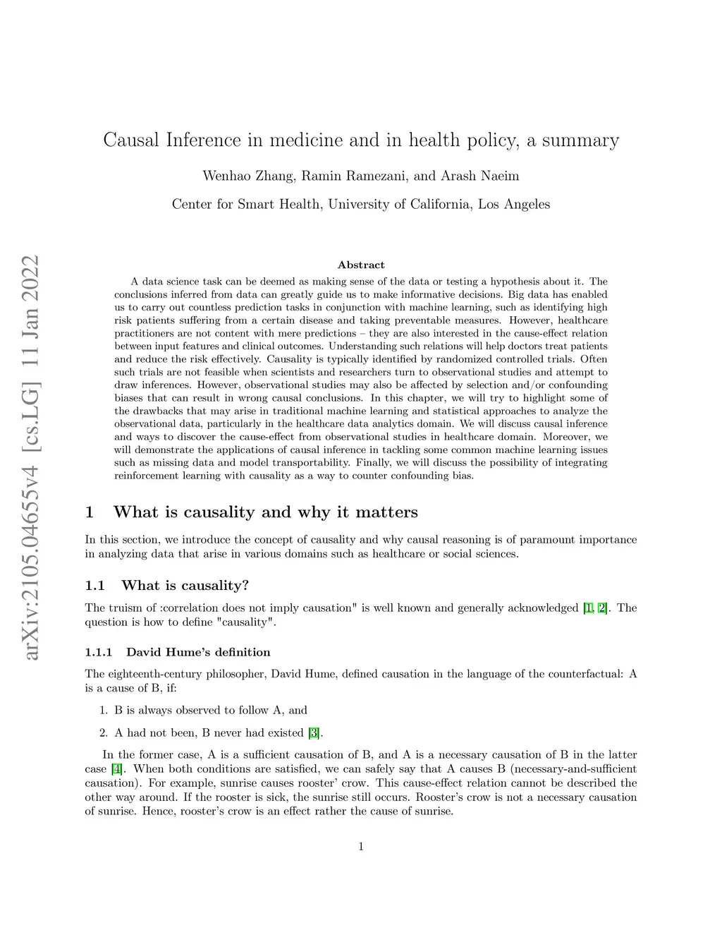 Causal Inference in medicine and in health policy, a summary