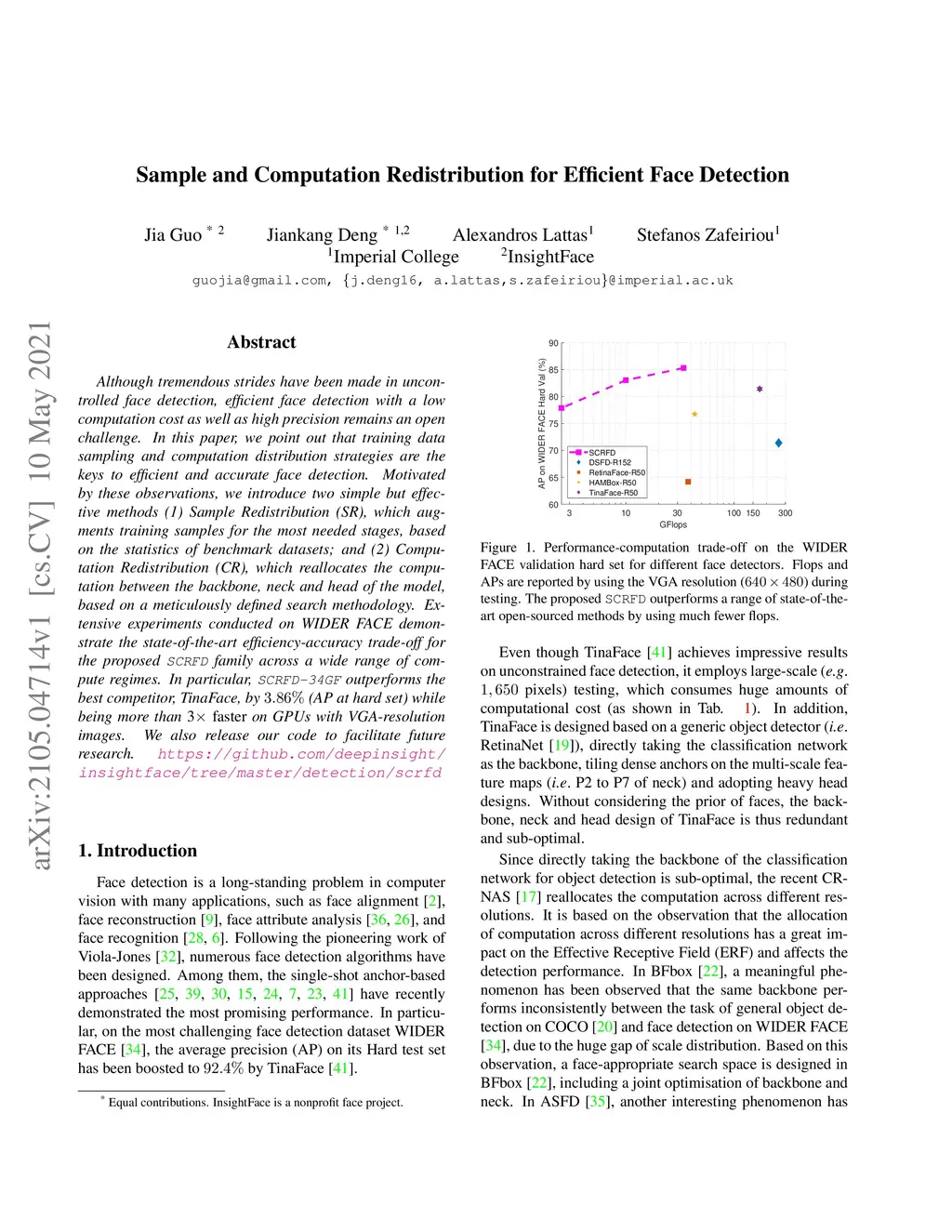 Although tremendous strides have been made in uncontrolled face detection, efficient face detection with a low computation cost as well as high precision remains an open challenge. In this paper, we point out that training data sampling and computation distribution strategies are the keys to efficient and accurate face detection. Motivated by these observations, we introduce two simple but effective methods (1) Sample Redistribution (SR), which augments training samples for the most needed stages, based on the statistics of benchmark datasets; and (2) Computation Redistribution (CR), which reallocates the computation between the backbone, neck and head of the model, based on a meticulously defined search methodology. Extensive experiments conducted on WIDER FACE demonstrate the state-of-the-art efficiency-accuracy trade-off for the proposed \scrfd family across a wide range of compute regimes. In particular, \scrfdf{34} outperforms the best competitor, TinaFace, by (AP at hard set) while being more than \emph{3 faster} on GPUs with VGA-resolution images. We also release our code to facilitate future research.