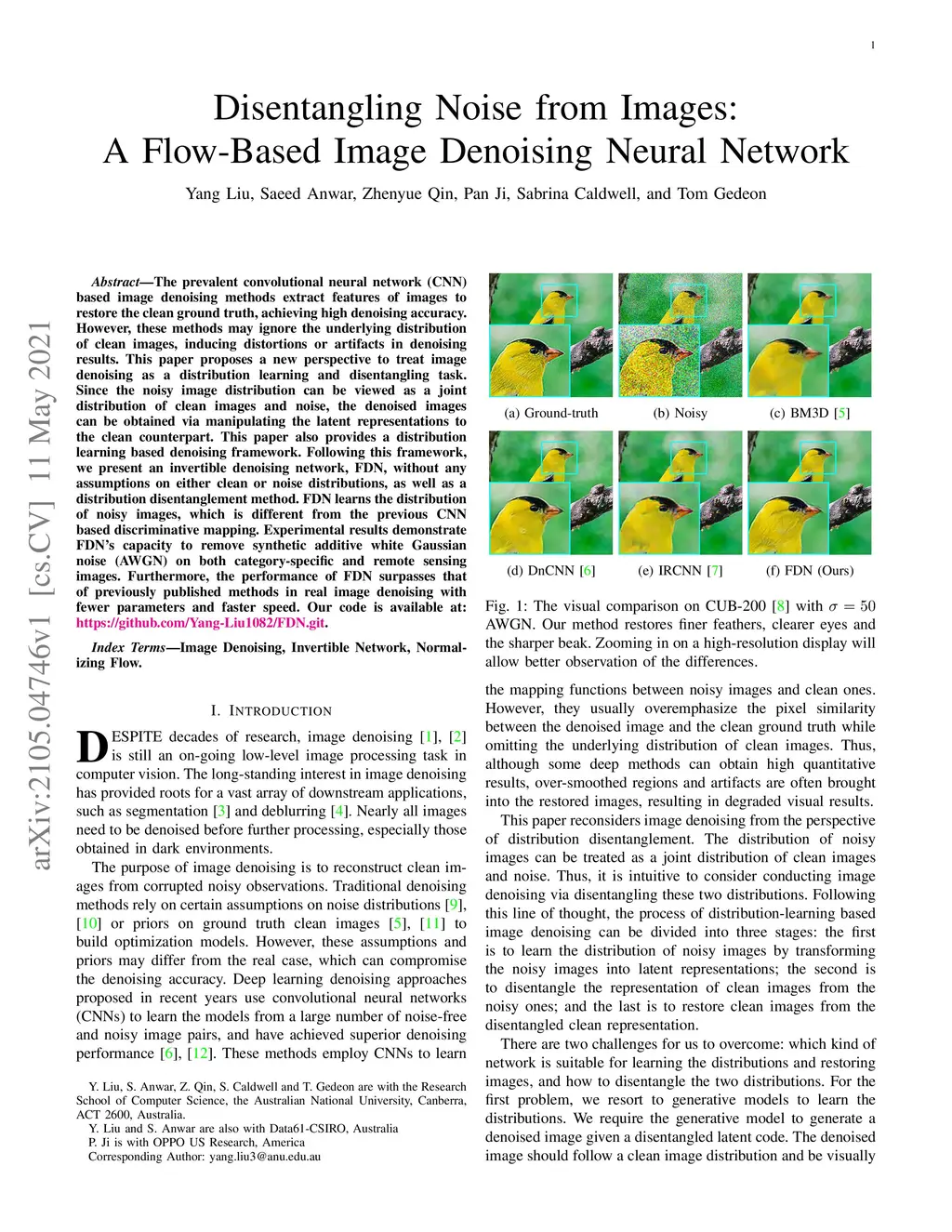 Disentangling Noise from Images: A Flow-Based Image Denoising Neural