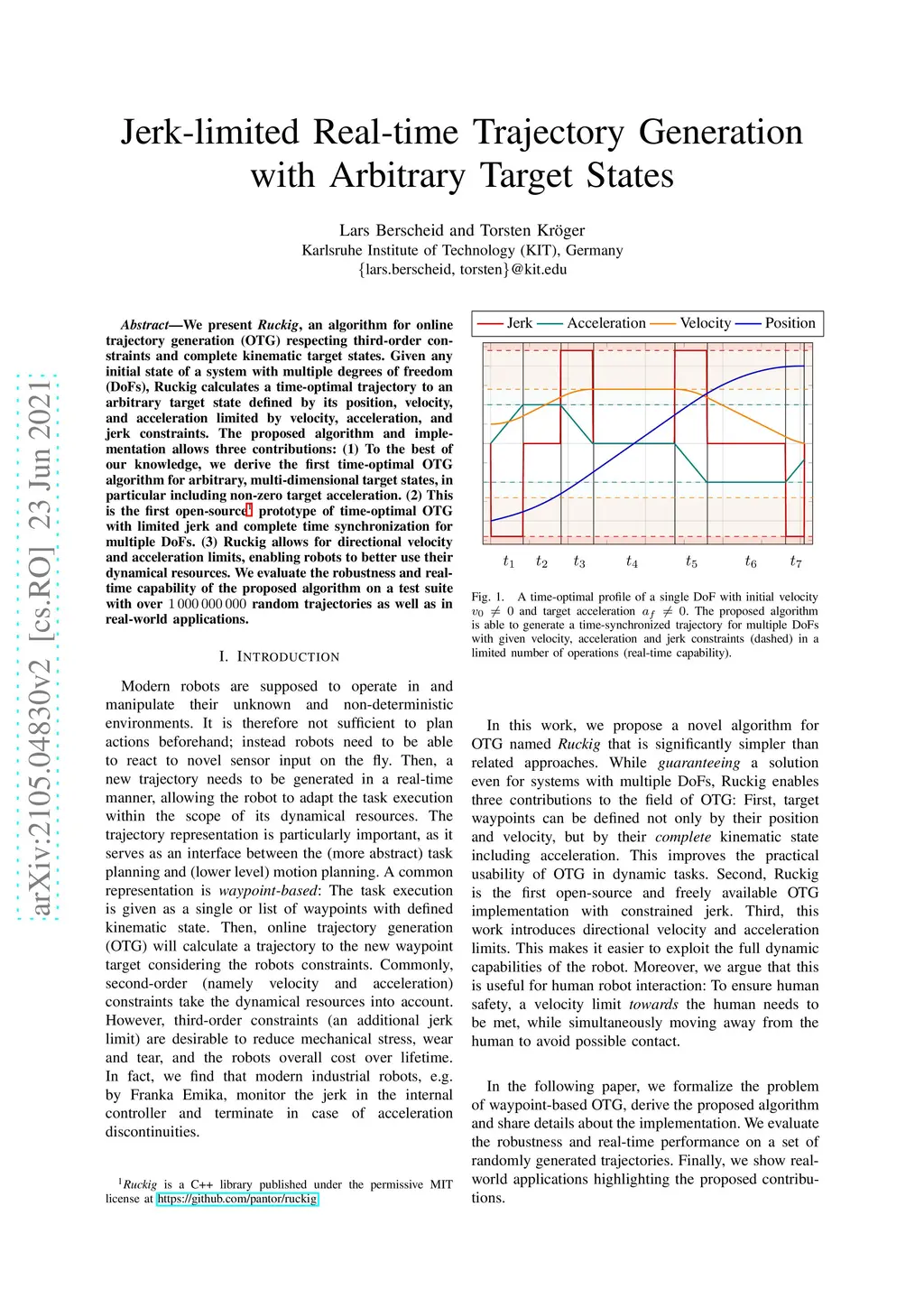 Jerk-limited Real-time Trajectory Generation with Arbitrary Target