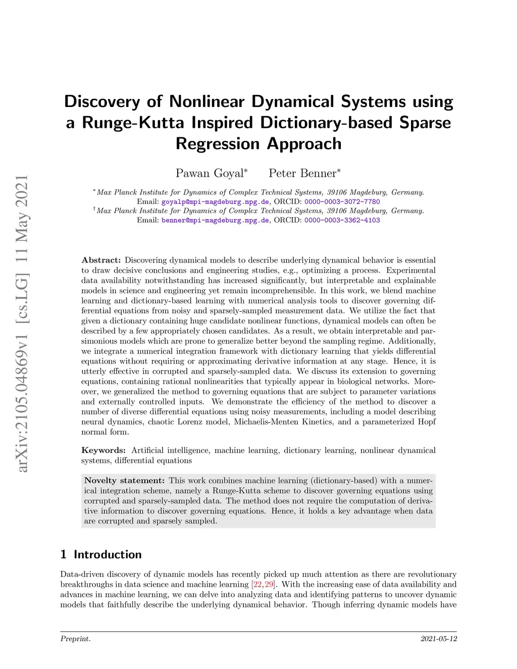 Discovering dynamical models to describe underlying dynamical behavior is essential to draw decisive conclusions and engineering studies, e.g., optimizing a process. Experimental data availability notwithstanding has increased significantly, but interpretable and explainable models in science and engineering yet remain incomprehensible. In this work, we blend machine learning and dictionary-based learning with numerical analysis tools to discover governing differential equations from noisy and sparsely-sampled measurement data. We utilize the fact that given a dictionary containing huge candidate nonlinear functions, dynamical models can often be described by a few appropriately chosen candidates. As a result, we obtain interpretable and parsimonious models which are prone to generalize better beyond the sampling regime. Additionally, we integrate a numerical integration framework with dictionary learning that yields differential equations without requiring or approximating derivative information at any stage. Hence, it is utterly effective in corrupted and sparsely-sampled data. We discuss its extension to governing equations, containing rational nonlinearities that typically appear in biological networks. Moreover, we generalized the method to governing equations that are subject to parameter variations and externally controlled inputs. We demonstrate the efficiency of the method to discover a number of diverse differential equations using noisy measurements, including a model describing neural dynamics, chaotic Lorenz model, Michaelis-Menten Kinetics, and a parameterized Hopf normal form.