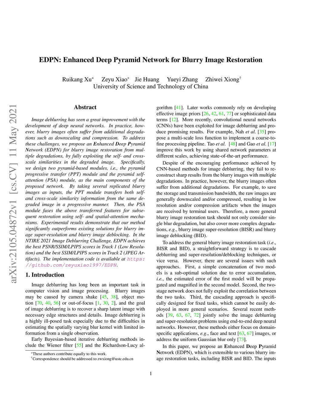 EDPN: Enhanced Deep Pyramid Network for Blurry Image Restoration
