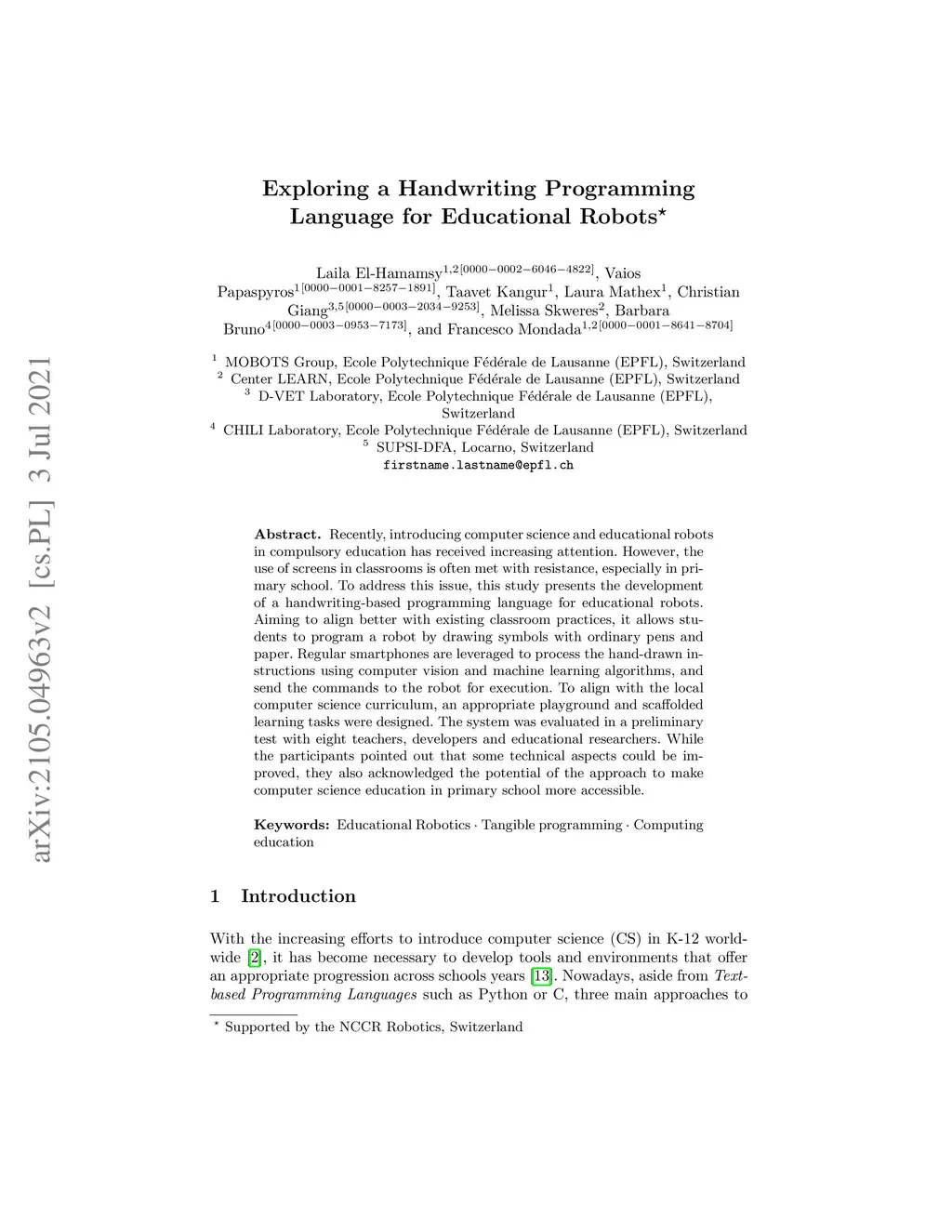 Exploring a Handwriting Programming Language for Educational Robots