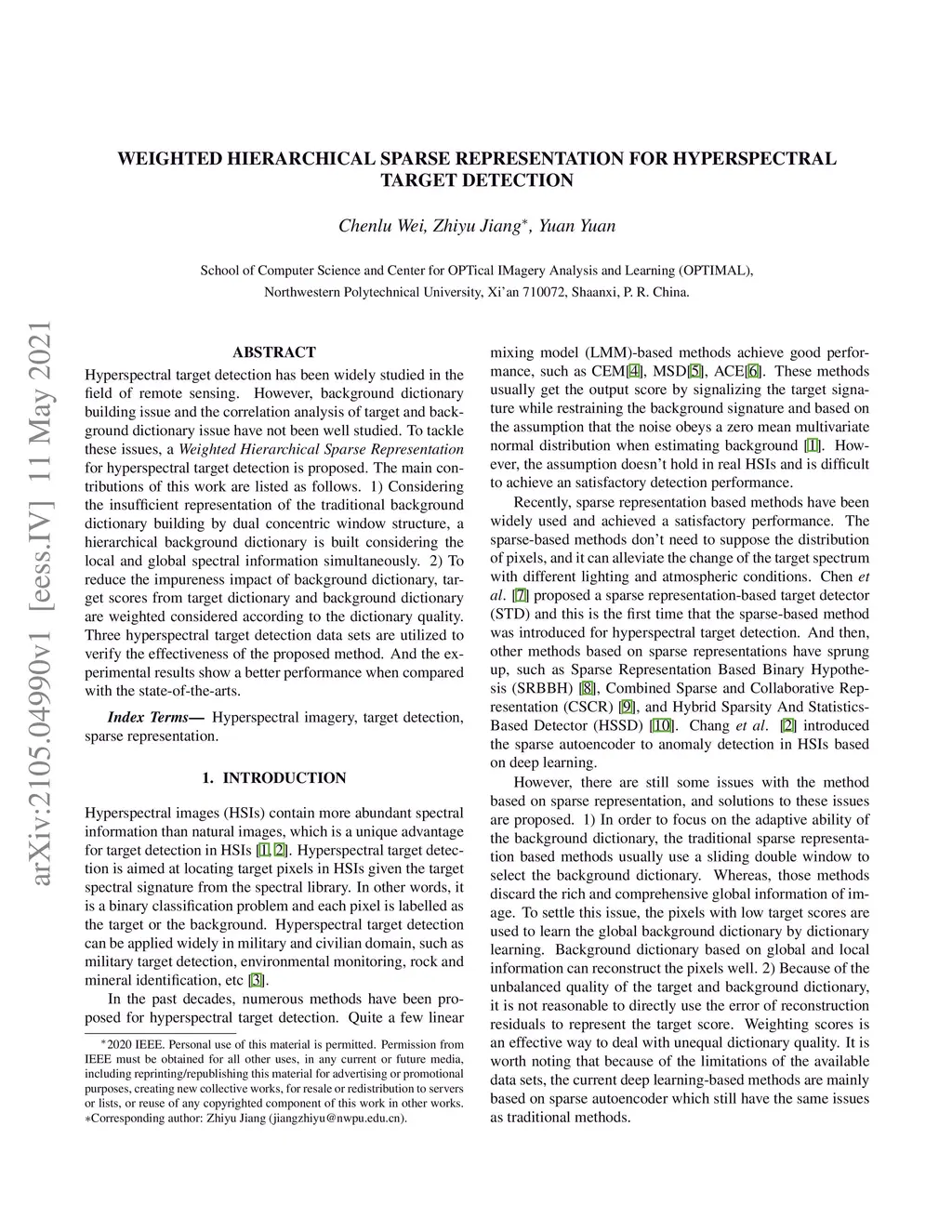 Weighted Hierarchical Sparse Representation for Hyperspectral Target