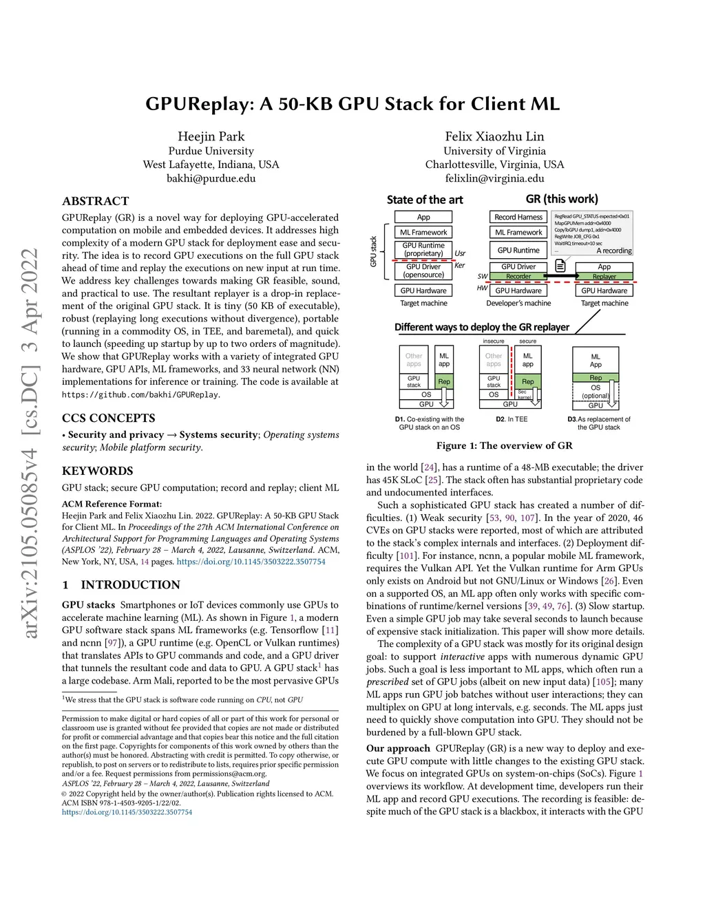 GPUReplay: A 50-KB GPU Stack for Client ML