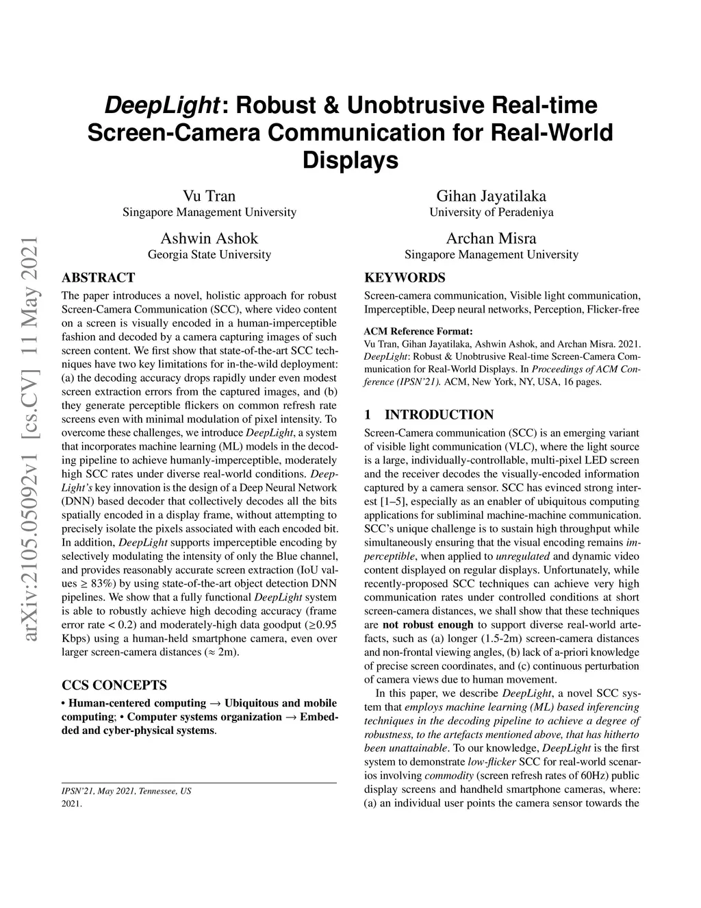 DeepLight: Robust & Unobtrusive Real-time Screen-Camera Communication