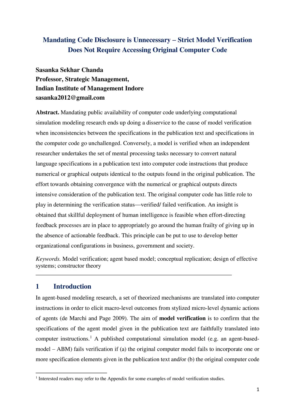 Mandating public availability of computer code underlying computational simulation modeling research ends up doing a disservice to the cause of model verification when inconsistencies between the specifications in the publication text and specifications in the computer code go unchallenged. Conversely, a model is verified when an independent researcher undertakes the set of mental processing tasks necessary to convert natural language specifications in a publication text into computer code instructions that produce numerical or graphical outputs identical to the outputs found in the original publication. The effort towards obtaining convergence with the numerical or graphical outputs directs intensive consideration of the publication text. The original computer code has little role to play in determining the verification status - verified/ failed verification. An insight is obtained that skillful deployment of human intelligence is feasible when effort-directing feedback processes are in place to appropriately go around the human frailty of giving up in the absence of actionable feedback. This principle can be put to use to develop better organizational configurations in business, government and society.