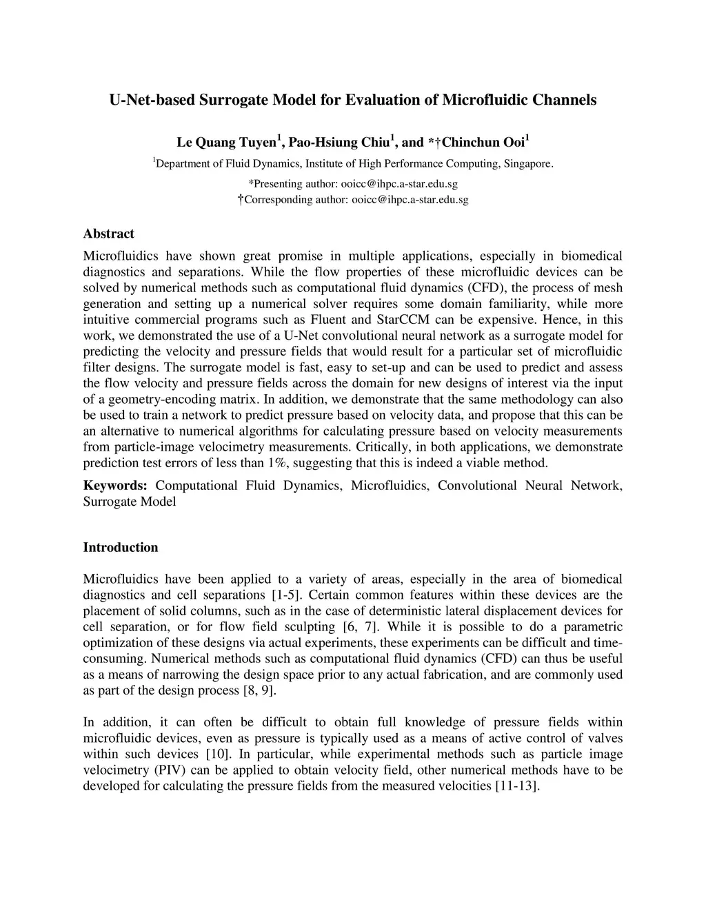 U-Net-Based Surrogate Model For Evaluation of Microfluidic Channels
