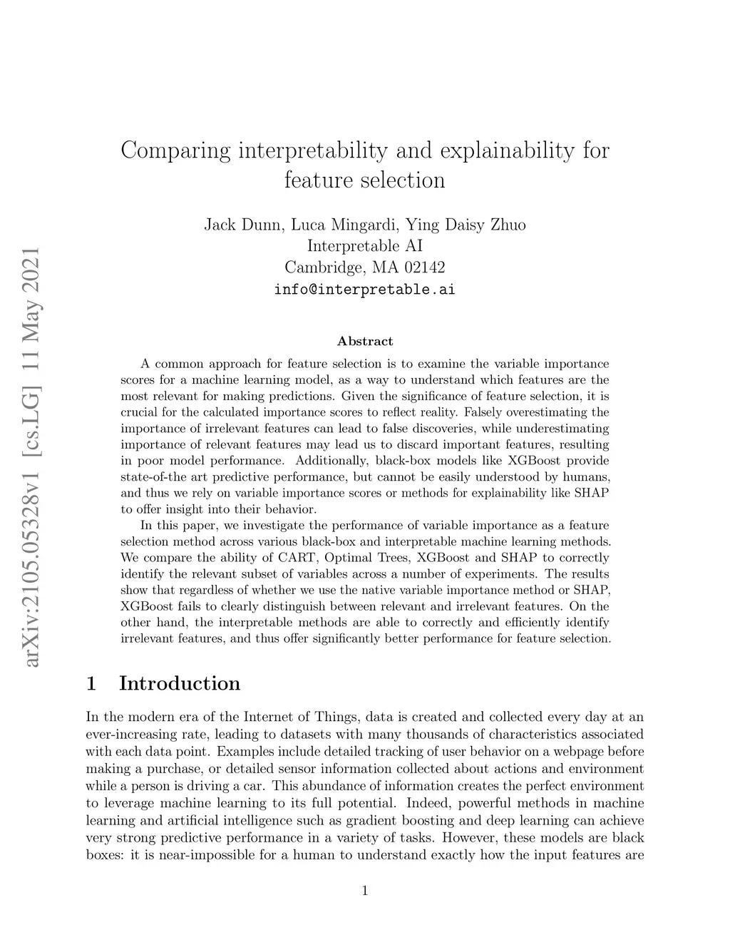 Comparing interpretability and explainability for feature selection