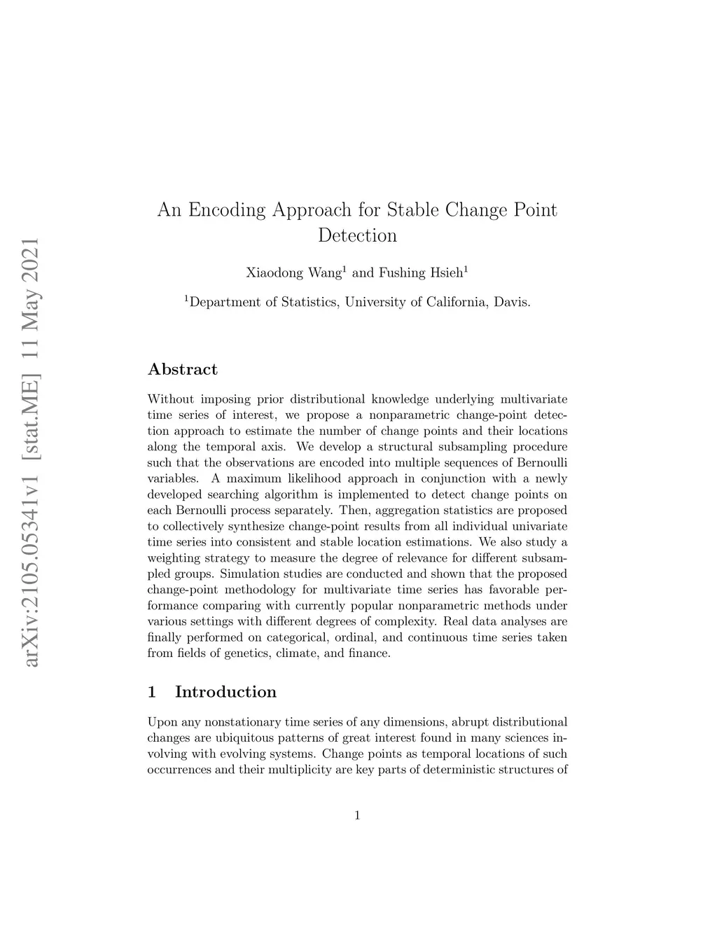 Without imposing prior distributional knowledge underlying multivariate time series of interest, we propose a nonparametric change-point detection approach to estimate the number of change points and their locations along the temporal axis. We develop a structural subsampling procedure such that the observations are encoded into multiple sequences of Bernoulli variables. A maximum likelihood approach in conjunction with a newly developed searching algorithm is implemented to detect change points on each Bernoulli process separately. Then, aggregation statistics are proposed to collectively synthesize change-point results from all individual univariate time series into consistent and stable location estimations. We also study a weighting strategy to measure the degree of relevance for different subsampled groups. Simulation studies are conducted and shown that the proposed change-point methodology for multivariate time series has favorable performance comparing with currently popular nonparametric methods under various settings with different degrees of complexity. Real data analyses are finally performed on categorical, ordinal, and continuous time series taken from fields of genetics, climate, and finance.