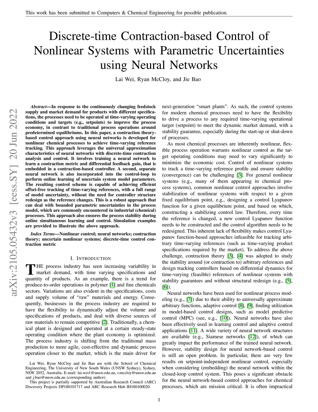 In response to the continuously changing feedstock supply and market demand for products with different specifications, the processes need to be operated at time-varying operating conditions and targets (e.g., setpoints) to improve the process economy, in contrast to traditional process operations around predetermined equilibriums. In this paper, a contraction theory-based control approach using neural networks is developed for nonlinear chemical processes to achieve time-varying reference tracking. This approach leverages the universal approximation characteristics of neural networks with discrete-time contraction analysis and control. It involves training a neural network to learn a contraction metric and differential feedback gain, that is embedded in a contraction-based controller. A second, separate neural network is also incorporated into the control-loop to perform online learning of uncertain system model parameters. The resulting control scheme is capable of achieving efficient offset-free tracking of time-varying references, with a full range of model uncertainty, without the need for controller structure redesign as the reference changes. This is a robust approach that can deal with bounded parametric uncertainties in the process model, which are commonly encountered in industrial (chemical) processes. This approach also ensures the process stability during online simultaneous learning and control. Simulation examples are provided to illustrate the above approach.
