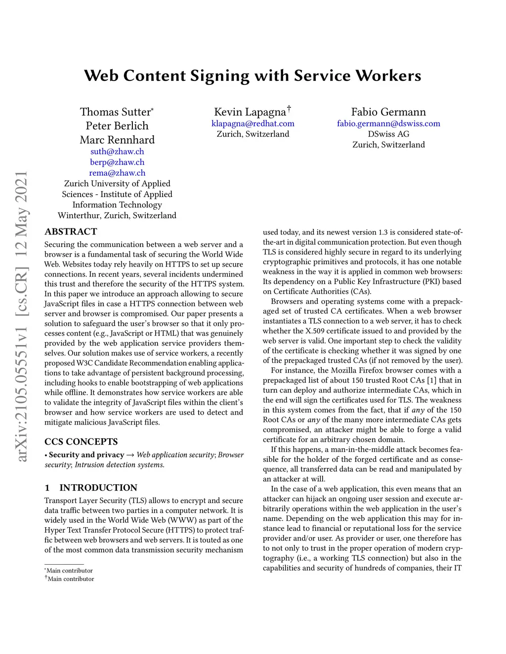 Web Content Signing with Service Workers