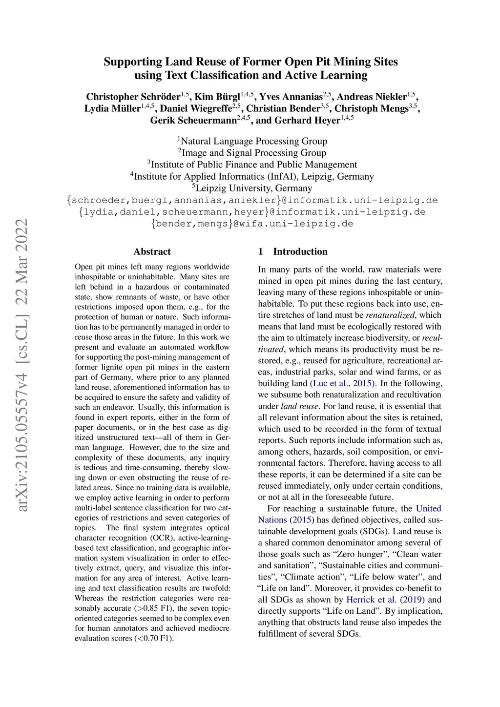 Supporting Land Reuse of Former Open Pit Mining Sites using Text