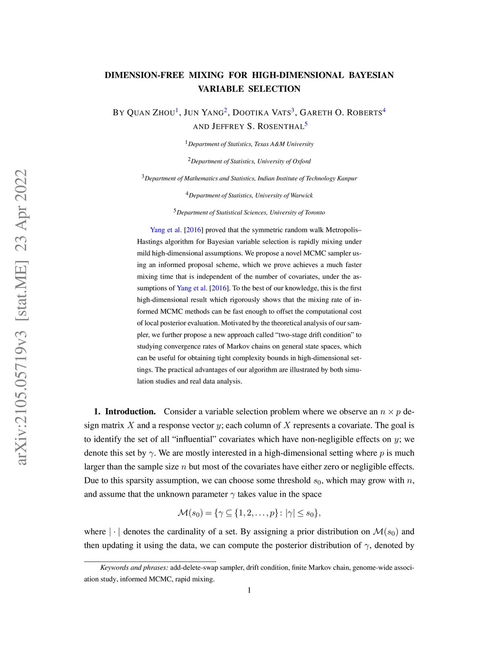 Yang et al. (2016) proved that the symmetric random walk Metropolis--Hastings algorithm for Bayesian variable selection is rapidly mixing under mild high-dimensional assumptions. We propose a novel MCMC sampler using an informed proposal scheme, which we prove achieves a much faster mixing time that is independent of the number of covariates, under the same assumptions. To the best of our knowledge, this is the first high-dimensional result which rigorously shows that the mixing rate of informed MCMC methods can be fast enough to offset the computational cost of local posterior evaluation. Motivated by the theoretical analysis of our sampler, we further propose a new approach called "two-stage drift condition" to studying convergence rates of Markov chains on general state spaces, which can be useful for obtaining tight complexity bounds in high-dimensional settings. The practical advantages of our algorithm are illustrated by both simulation studies and real data analysis.