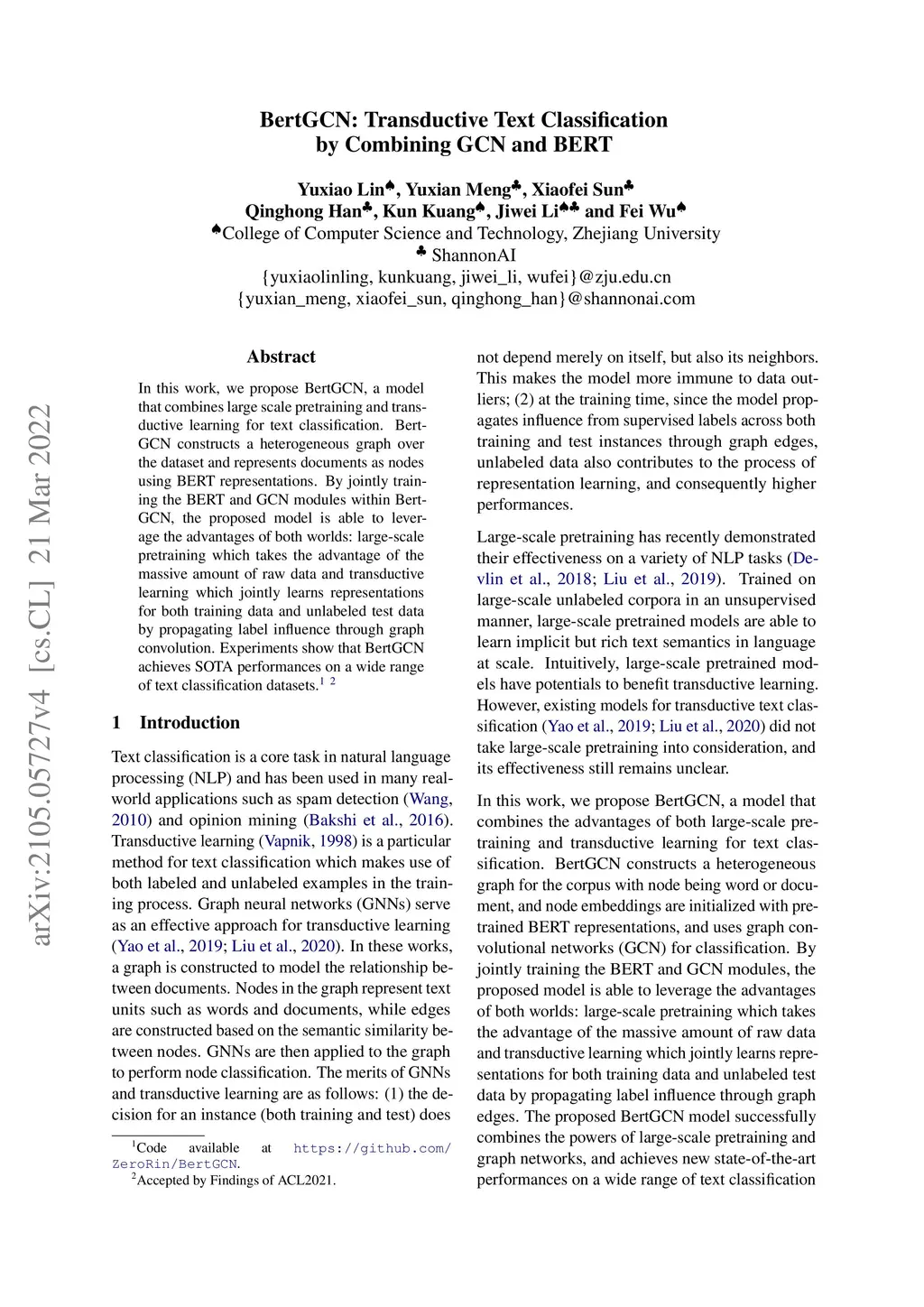 BertGCN: Transductive Text Classification by Combining GCN and BERT
