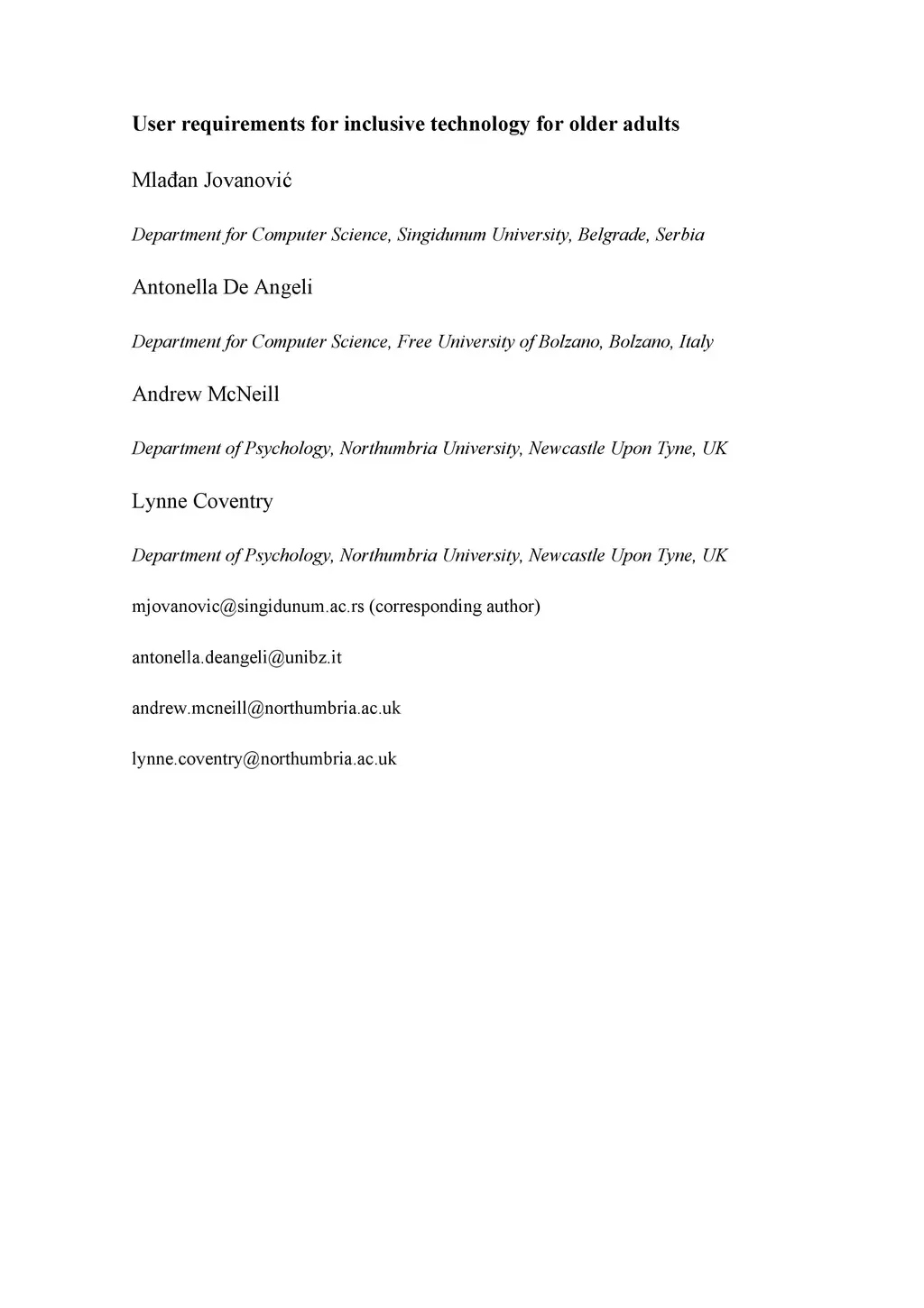 User requirements for inclusive technology for older adults