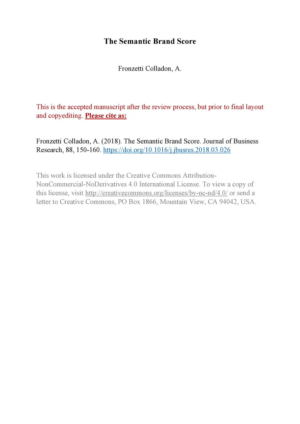 The Semantic Brand Score (SBS) is a new measure of brand importance calculated on text data, combining methods of social network and semantic analysis. This metric is flexible as it can be used in different contexts and across products, markets and languages. It is applicable not only to brands, but also to multiple sets of words. The SBS, described together with its three dimensions of brand prevalence, diversity and connectivity, represents a contribution to the research on brand equity and on word co-occurrence networks. It can be used to support decision-making processes within companies; for example, it can be applied to forecast a company's stock price or to assess brand importance with respect to competitors. On the one side, the SBS relates to familiar constructs of brand equity, on the other, it offers new perspectives for effective strategic management of brands in the era of big data.