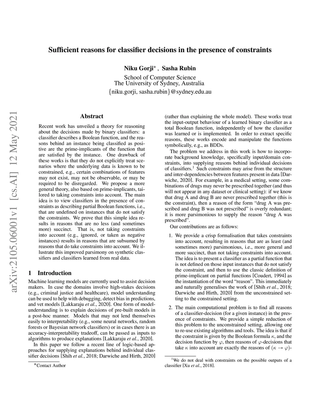 Sufficient reasons for classifier decisions in the presence of