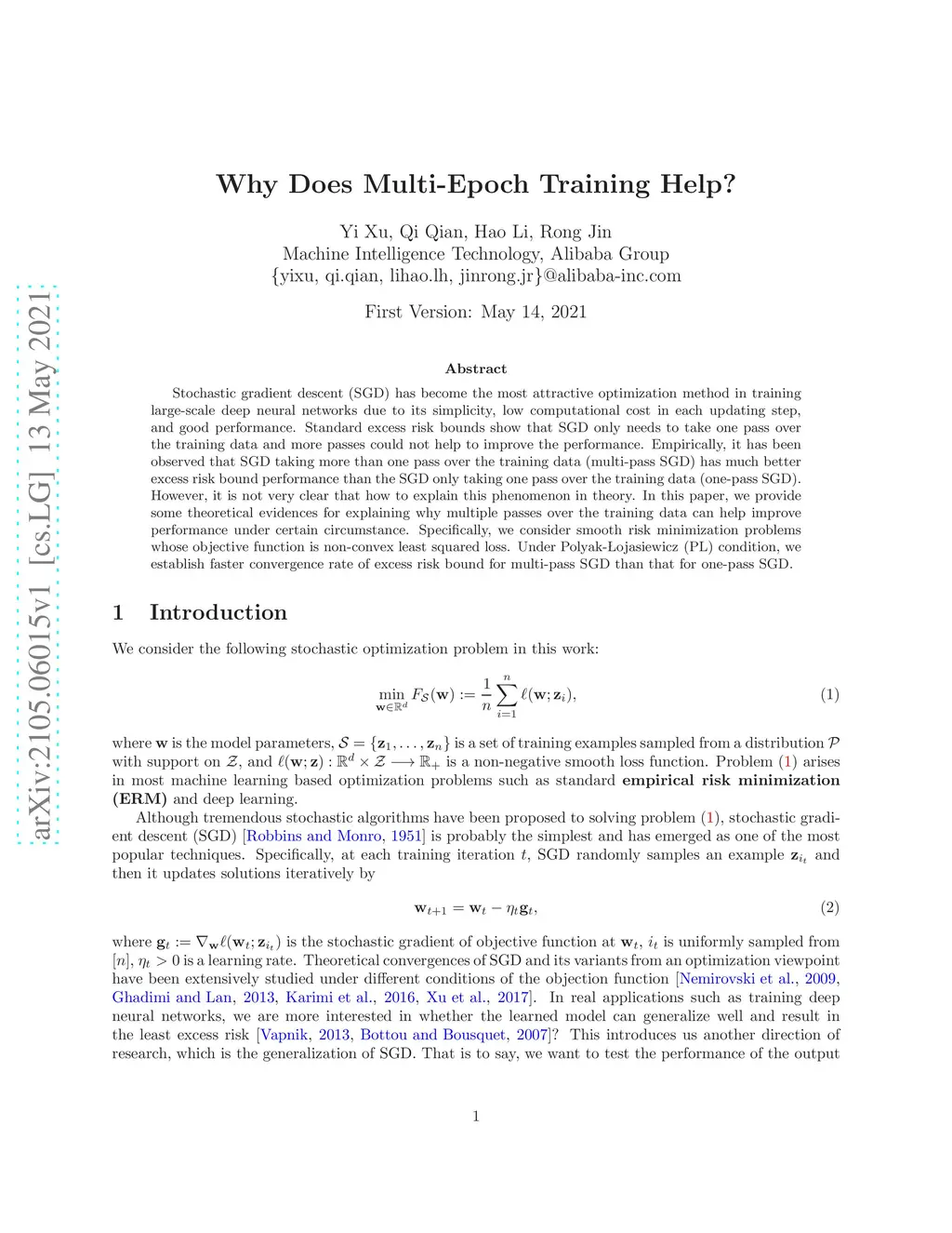 Stochastic gradient descent (SGD) has become the most attractive optimization method in training large-scale deep neural networks due to its simplicity, low computational cost in each updating step, and good performance. Standard excess risk bounds show that SGD only needs to take one pass over the training data and more passes could not help to improve the performance. Empirically, it has been observed that SGD taking more than one pass over the training data (multi-pass SGD) has much better excess risk bound performance than the SGD only taking one pass over the training data (one-pass SGD). However, it is not very clear that how to explain this phenomenon in theory. In this paper, we provide some theoretical evidences for explaining why multiple passes over the training data can help improve performance under certain circumstance. Specifically, we consider smooth risk minimization problems whose objective function is non-convex least squared loss. Under Polyak-Lojasiewicz (PL) condition, we establish faster convergence rate of excess risk bound for multi-pass SGD than that for one-pass SGD.