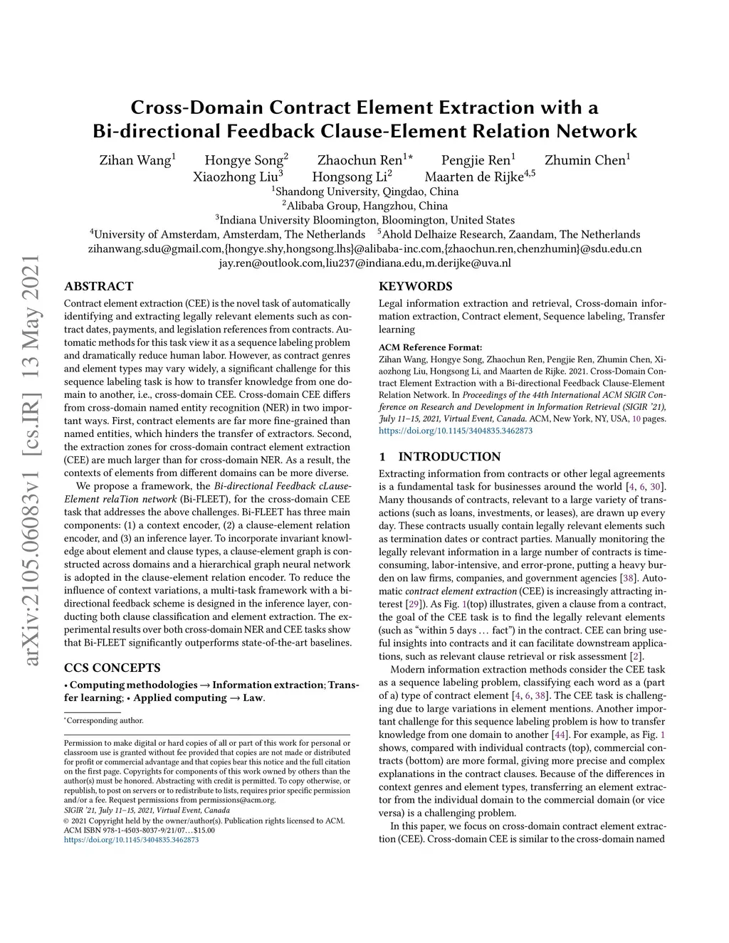 Cross-Domain Contract Element Extraction with a Bi-directional Feedback
