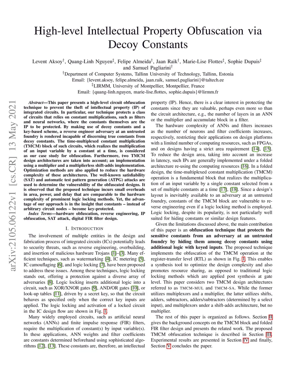 High-level Intellectual Property Obfuscation via Decoy Constants