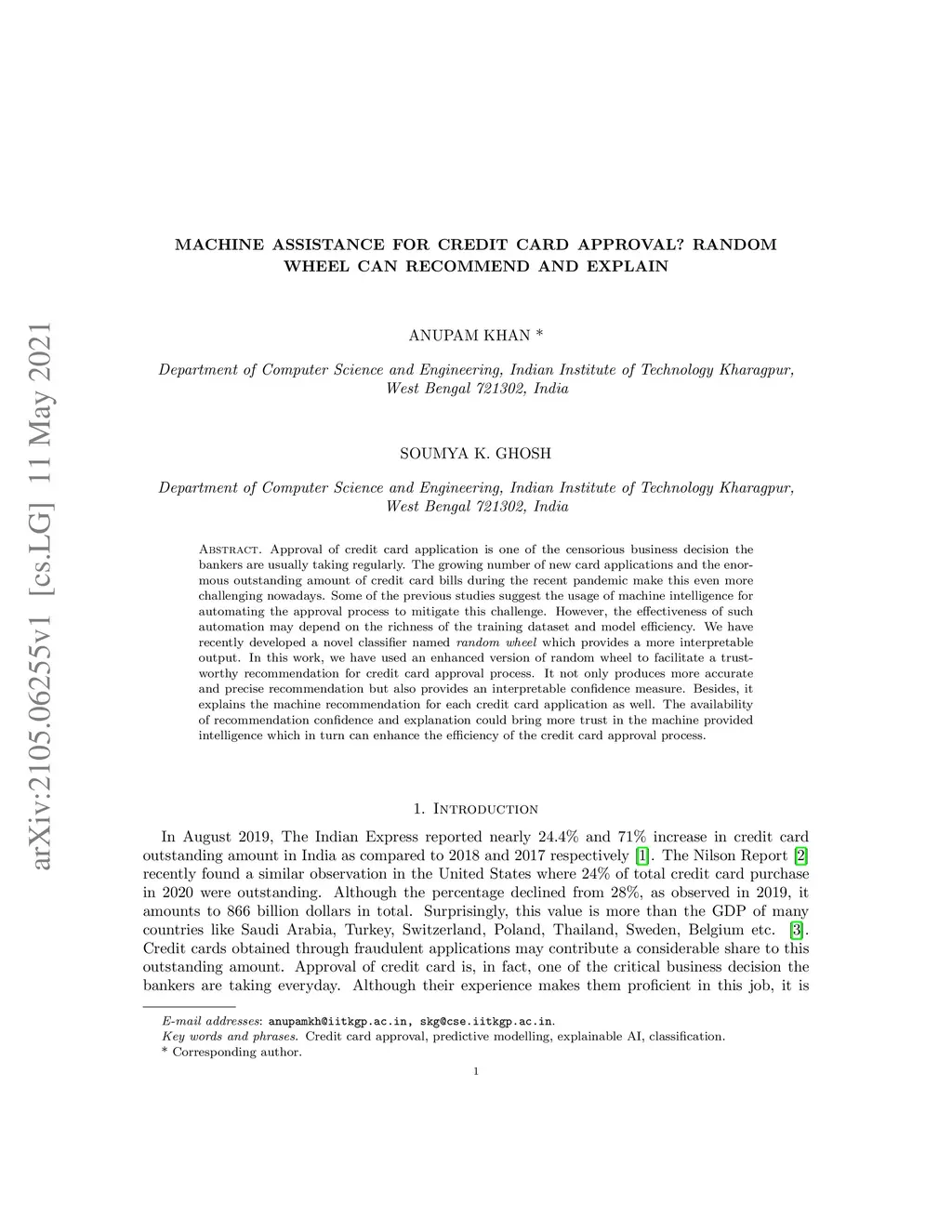 Machine Assistance for Credit Card Approval? Random Wheel can Recommend