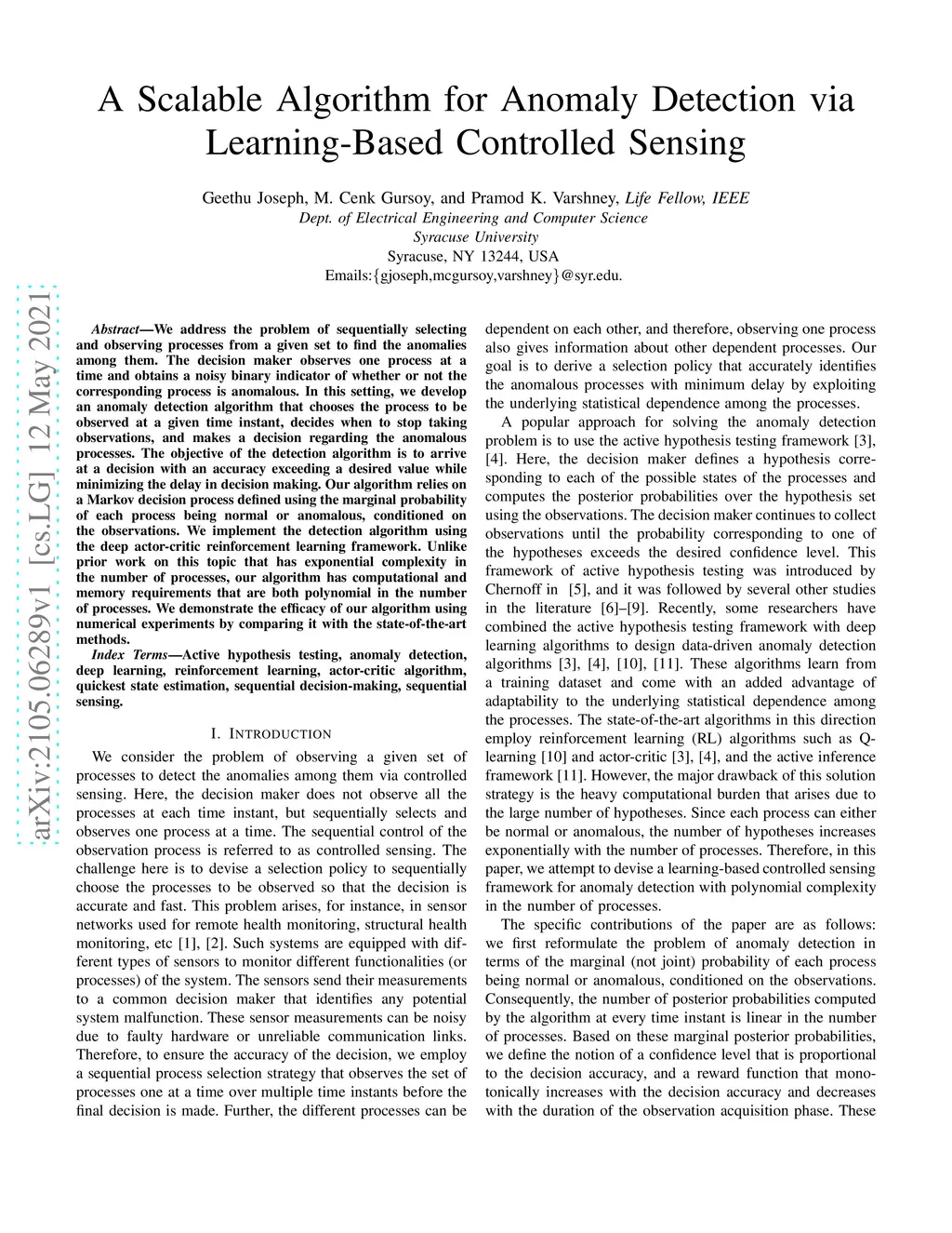A Scalable Algorithm for Anomaly Detection via Learning-Based Controlled