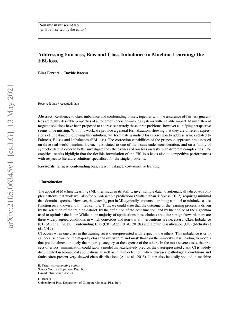 Resilience to class imbalance and confounding biases, together with the assurance of fairness guarantees are highly desirable properties of autonomous decision-making systems with real-life impact. Many different targeted solutions have been proposed to address separately these three problems, however a unifying perspective seems to be missing. With this work, we provide a general formalization, showing that they are different expressions of unbalance. Following this intuition, we formulate a unified loss correction to address issues related to Fairness, Biases and Imbalances (FBI-loss). The correction capabilities of the proposed approach are assessed on three real-world benchmarks, each associated to one of the issues under consideration, and on a family of synthetic data in order to better investigate the effectiveness of our loss on tasks with different complexities. The empirical results highlight that the flexible formulation of the FBI-loss leads also to competitive performances with respect to literature solutions specialised for the single problems.