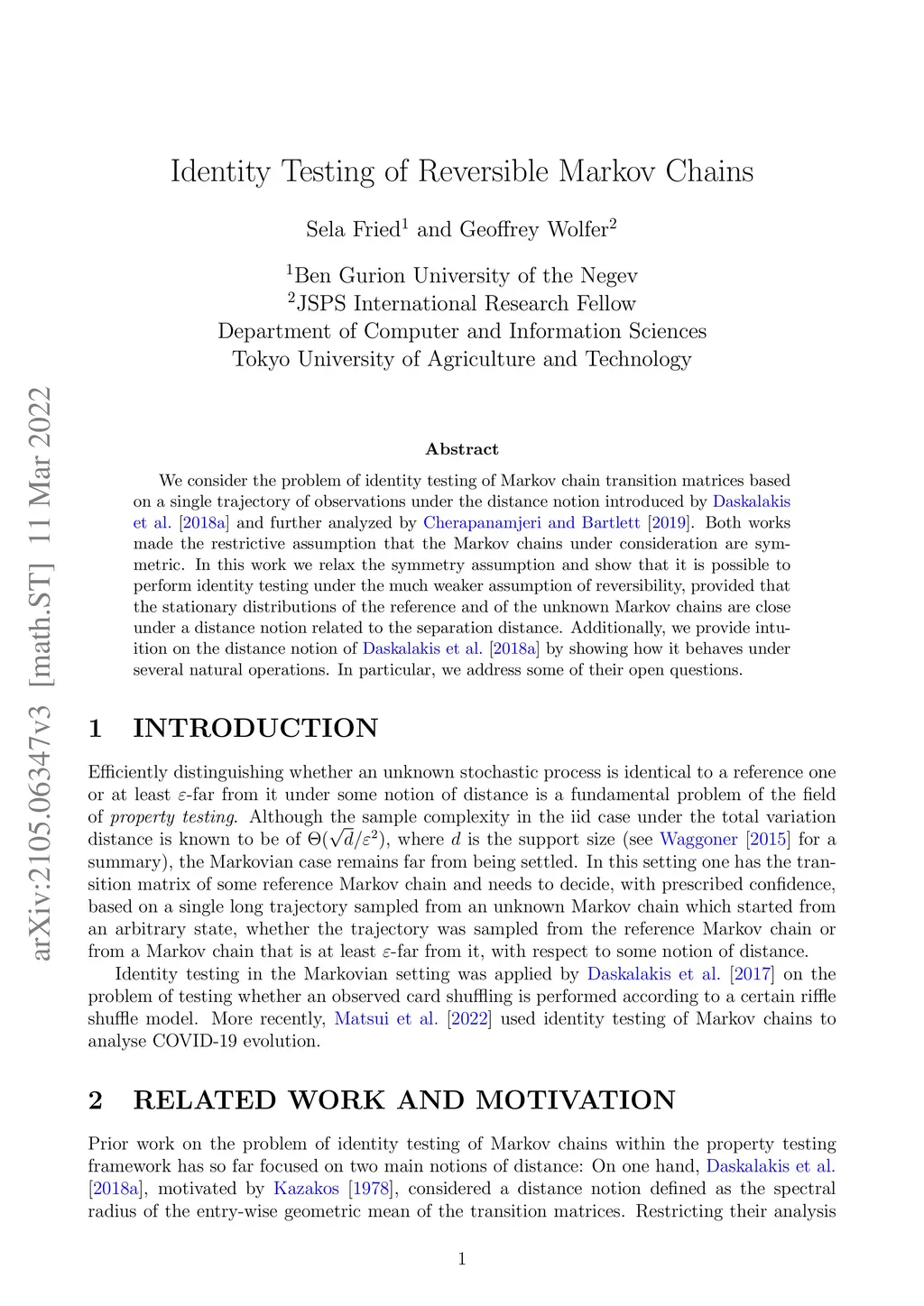 We consider the problem of identity testing of Markov chain transition matrices based on a single trajectory of observations under the distance notion introduced by Daskalakis et al. [2018a] and further analyzed by Cherapanamjeri and Bartlett [2019]. Both works made the restrictive assumption that the Markov chains under consideration are symmetric. In this work we relax the symmetry assumption and show that it is possible to perform identity testing under the much weaker assumption of reversibility, provided that the stationary distributions of the reference and of the unknown Markov chains are close under a distance notion related to the separation distance. Additionally, we provide intuition on the distance notion of Daskalakis et al. [2018a] by showing how it behaves under several natural operations. In particular, we address some of their open questions.